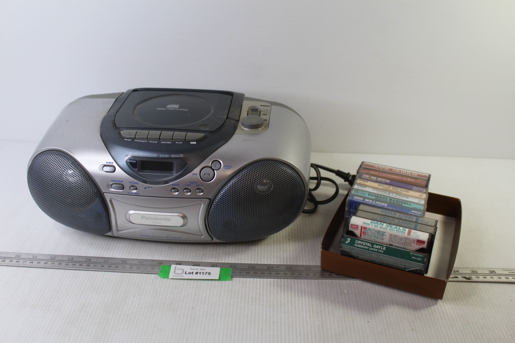 Panasonic AM/FM Cassette & CD Player (powers on - radio works) - Cassette Tapes Charlie Pride - Anne Murray - Dan Seals - Ink Spots