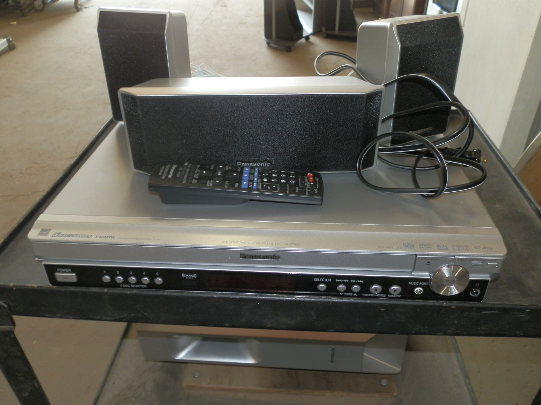 Panasonic Home Theater System, 5 disc changer, comes with 3 speakers and the sub, no remote, in good working condition...used