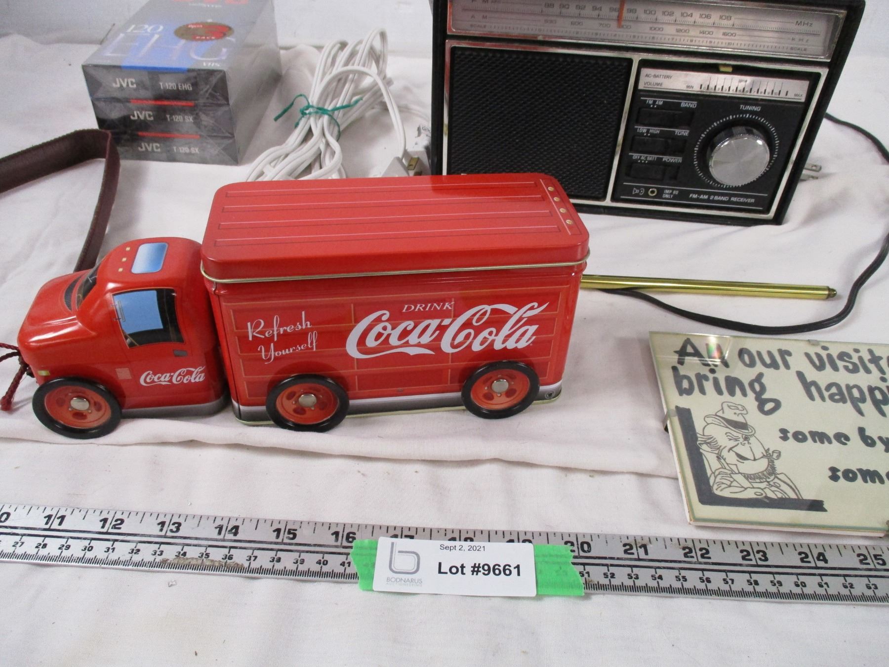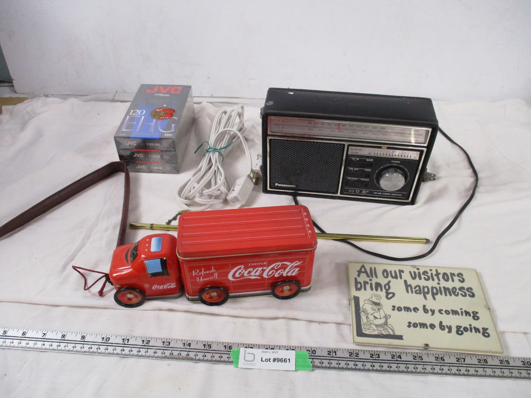 Panasonic Radio, New VHS Tapes, Coca Cola Tin Plus Misc