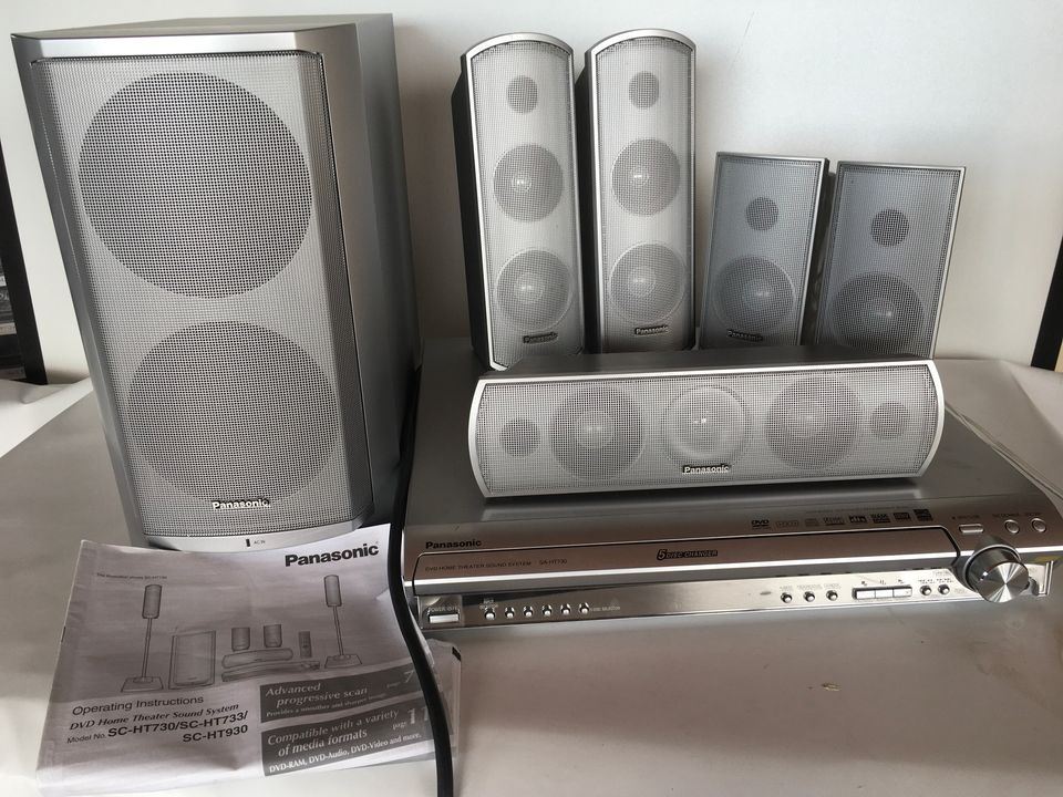 A/V Receiver with Built-in DVD/CD Player, 5-Disc Changer, complete 5 Speaker System, and Subwoofer. In great working order