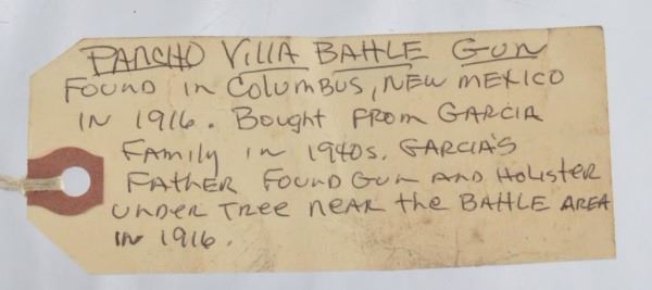 Found in Columbus New Mexico under a tree near the Columbus, New Mexico battle area by Garcia's father. . Bought from the Garcia family in 1940s." Spanish copy of a Colt SAA. Mexican Revolution gun from an old Columbus New Mexico collection. Made famous by the Pancho Villa raid in 1916.