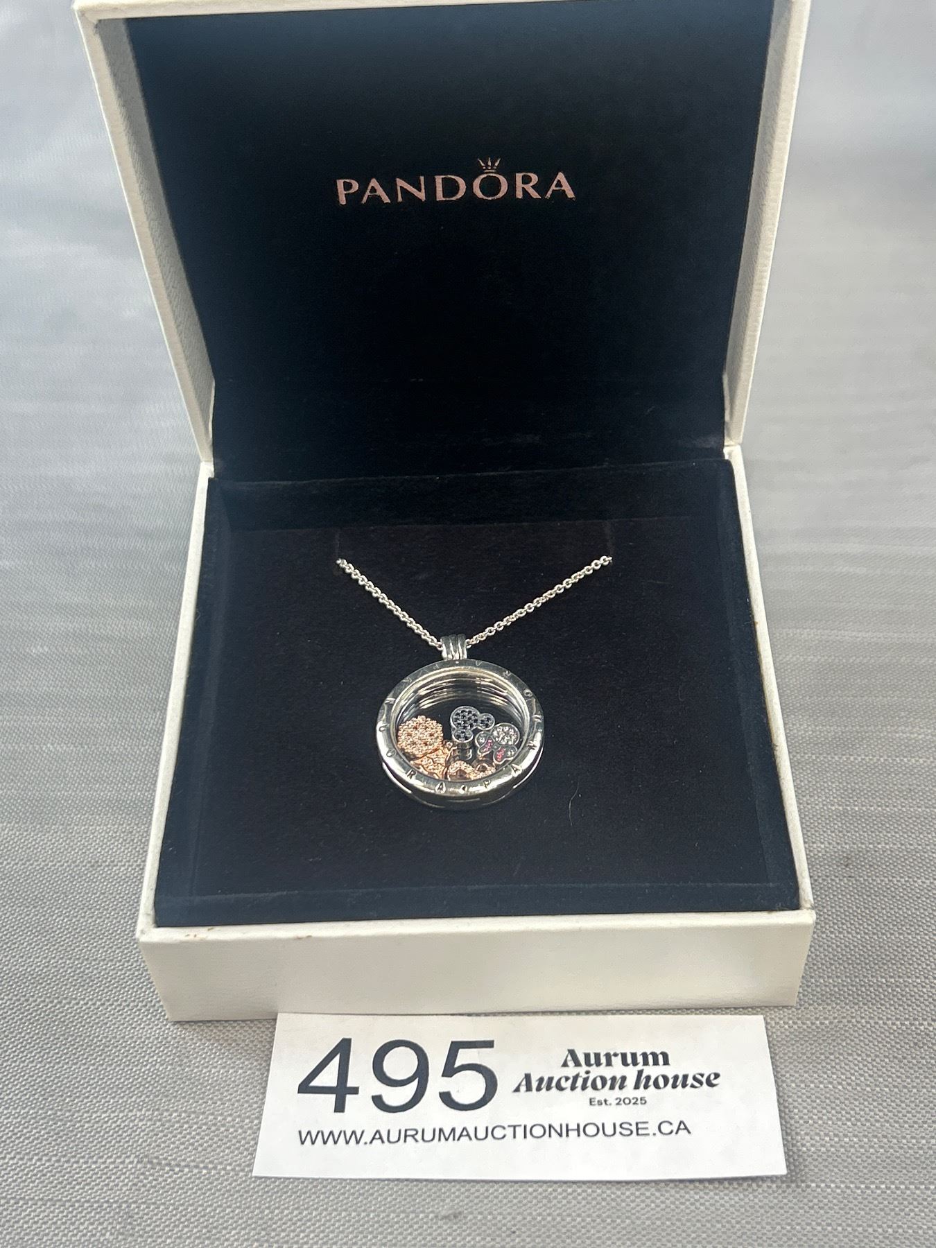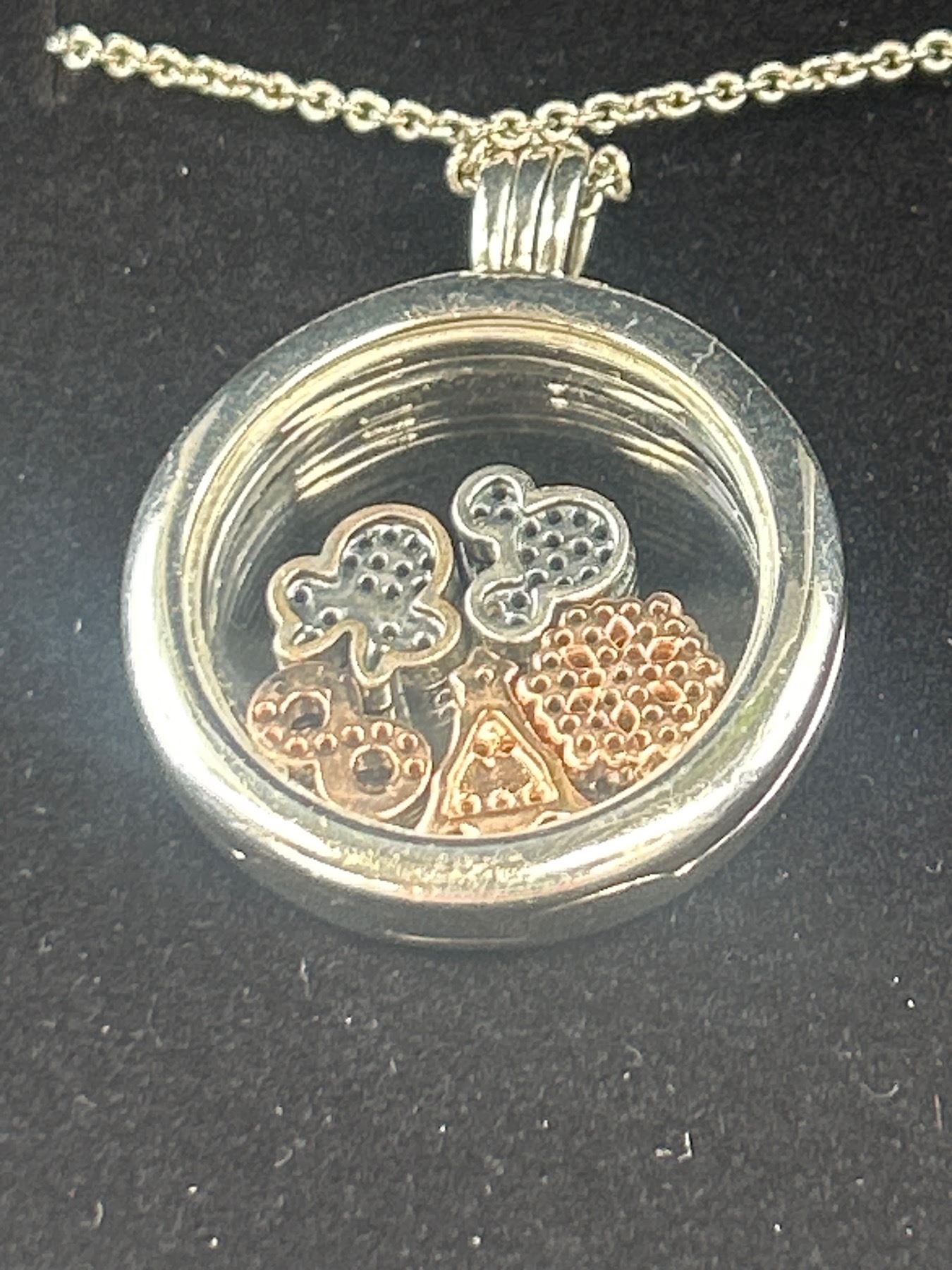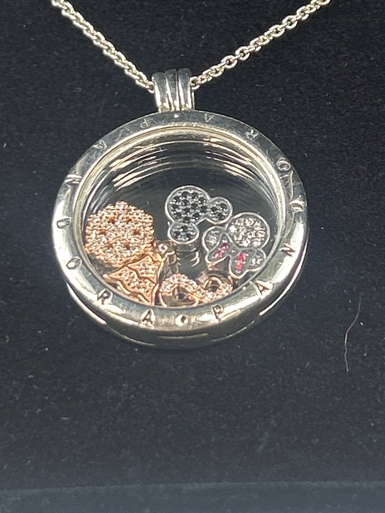Pandora ALE Floating Charm Locket (17.5") w/ Mickey, Minnie and Rose Gold Plated Charms