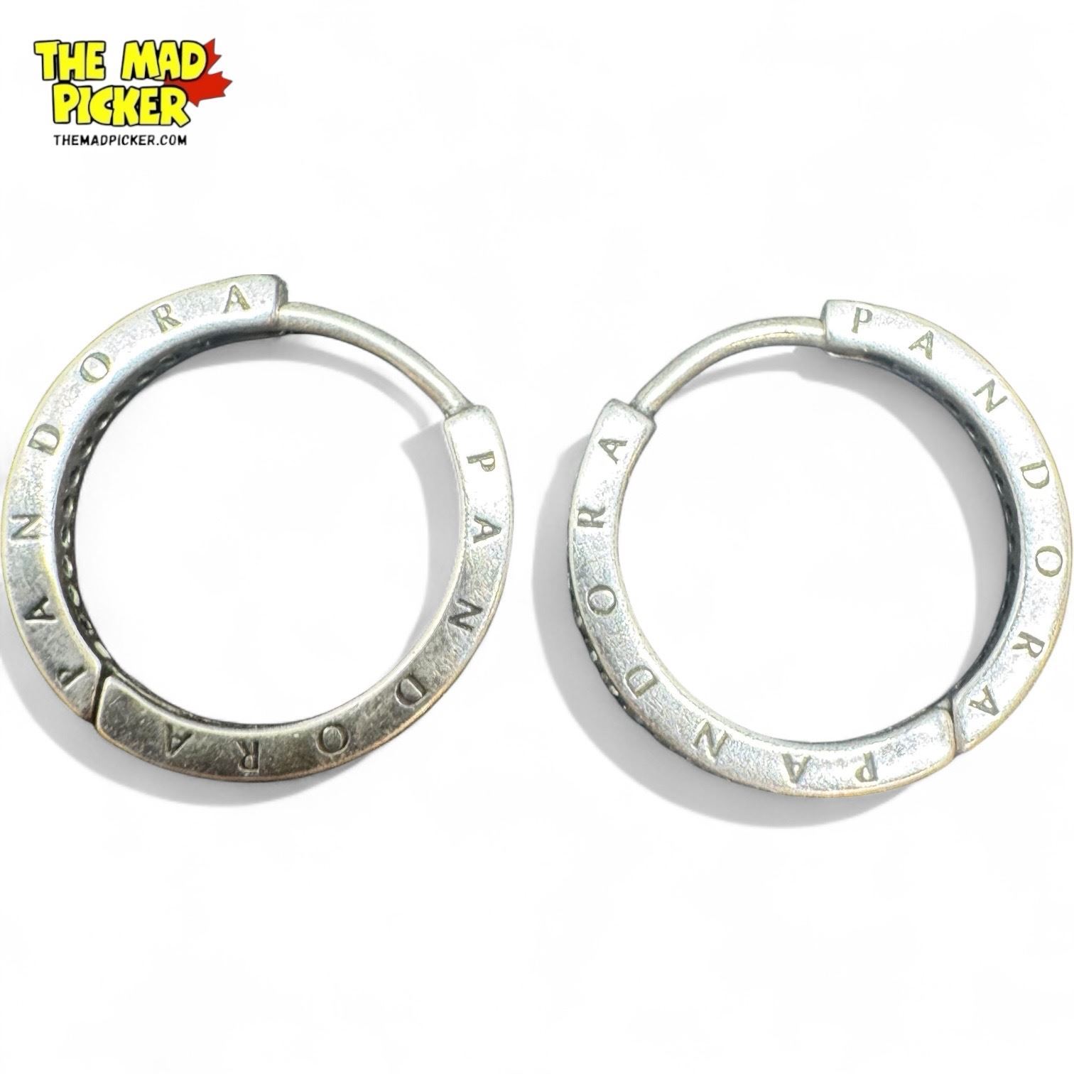 Pandora Sparkle Logo Hoops Sterling .925 Silver Earrings Authentic