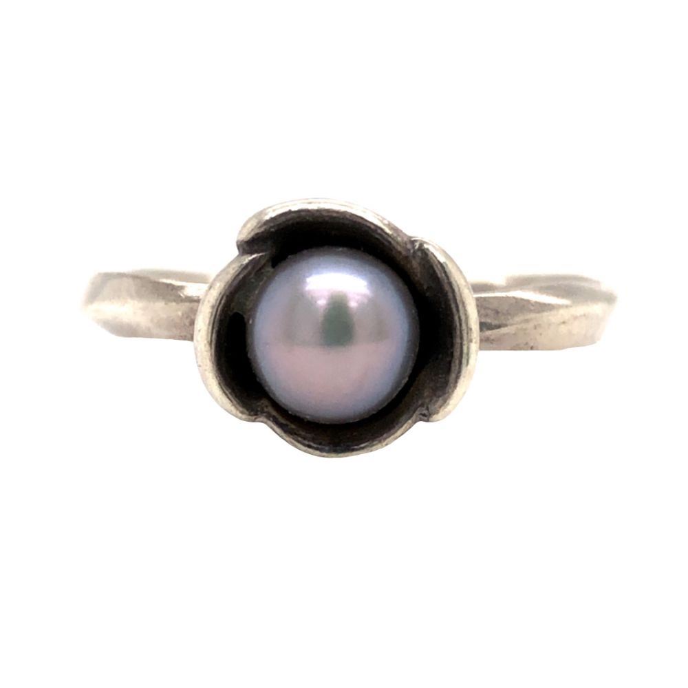 DESCRIPTION DETAIL: Pandora Sterling Silver Grey Pearl Bloom Stackable Ring 4.8g& nbsp; Size 8, Signed ALE