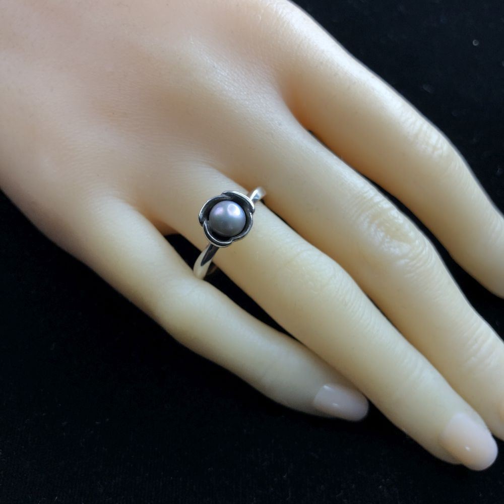 TITLE DESCRIPTION:& nbsp; Pandora Sterling Silver Grey Pearl Bloom Stackable Ring& nbsp;