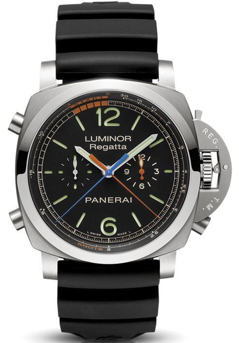 Model: PAM00526 - CASE = [Material:Stainless Steel], [Case Diameter:47], [Bezel:Fixed], [Case Back:Skeleton], [Water Resistant:100 Meters - 330 Feet], [Crystal:Scratch Resiatant Sapphire], DIAL = [Color:Black], MOVEMENT = [Type:Automatic Chronograph Flyback], [Crown:Screw Down], BAND = [Clasp:Tang], [Type:Black Rubber], (In Stock - Ready to ship.)