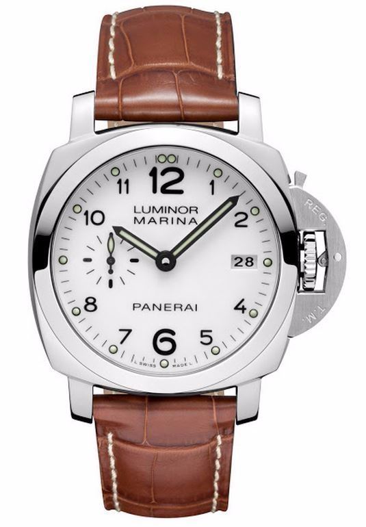 Model: PAM00523 - CASE = [Material:Stainless Steel], [Case Diameter:42], [Bezel:Fixed], [Case Back:See-thru Sapphire crystal], [Water Resistant:100 Meters - 330 Feet], [Crystal:Scratch Resistant Sapphire],; DIAL = [Color:White],; MOVEMENT = [Type:Self Winding Automatic], [Crown:Screw Down],; BAND = [Clasp:Tang], [Type:Brown Alligator Leather], (Usually ships in 1 to 2 weeks.)