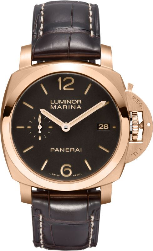 Model: PAM00393 - CASE = [Material:18k Rose Gold], [Case Diameter:42], [Case Back:See-thru Sapphire Crystal], [Water Resistant:50 Meters/ 165 Feet], [Crystal:Scratch Resistant Sapphire Crystal], DIAL = [Color:Brown], MOVEMENT = [Type:Automatic Self Winding], BAND = [Clasp:Tang], [Type:Brown Crocodile Leather], (Usually ships in 1 to 2 weeks.)