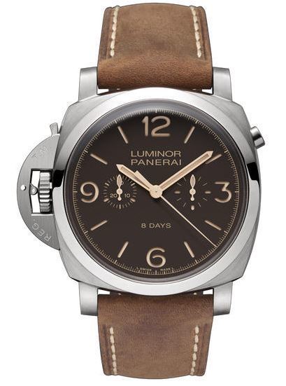 Model: PAM00579 - CASE = [Material:Stainless Steel], [Case Diameter:47], [Bezel:Fixed], [Case Back:Solid], [Water Resistant:100 Meters - 330 Feet], [Crystal:Scratch Resistant Sapphire], DIAL = [Color:Brown], MOVEMENT = [Type:Hand Wound Chronograph], [Crown:Screw Down], BAND = [Clasp:Tang], [Type:Brown Leather], (Usually ships in 1 to 2 weeks.)