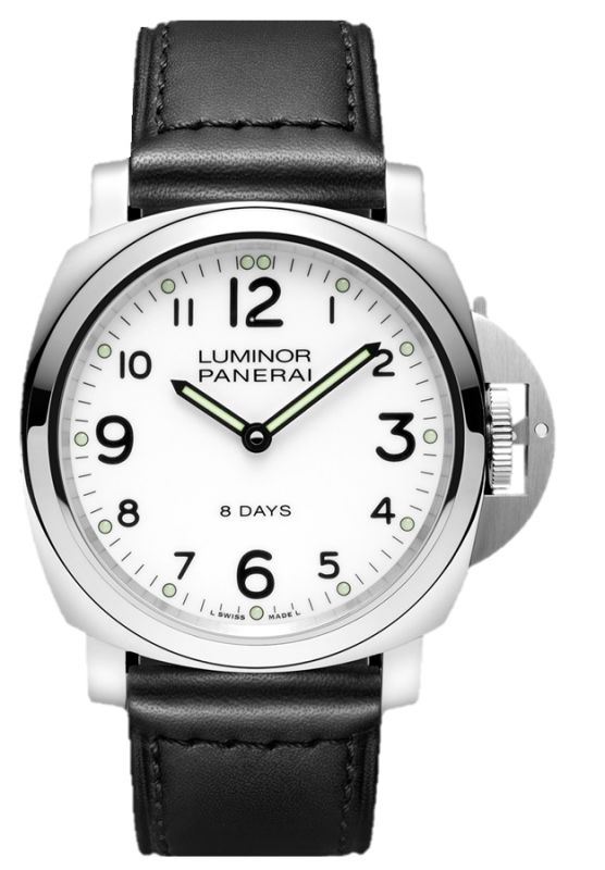 Model: PAM00561 - CASE = [Material:Stainless Steel], [Case Diameter:44], [Bezel:Fixed], [Case Back:See-thru Sapphire crystal], [Water Resistant:300 Meters/1000 Feet], [Crystal:Scratch Resistant Sapphire], DIAL = [Color:White], MOVEMENT = [Type:Manual Winding Calibre Panerai P.5000], BAND = [Clasp:Tang Buckle], [Type:Black Alligator Leather with interchangable Black Rubber Strap], (In Stock - Ready to ship.)