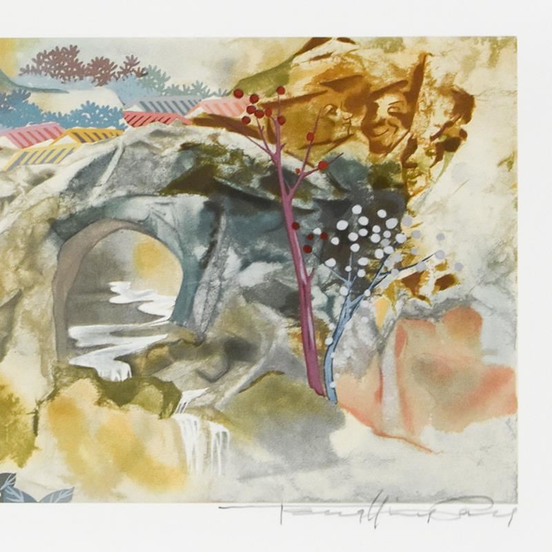 "Mystic Cove" is a limited edition lithograph on paper by Pang Tseng-Ying (1916-1997), numbered 173/285 and hand signed by the artist. Includes Letter of Authenticity. Measures approx. 33.5" x 15.5" (border), 29" x 10.5" (image). There are creases on the corners and edges of the border that may be concealed when the piece is framed.
