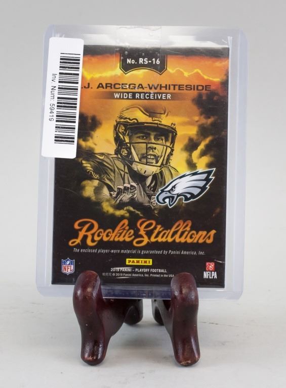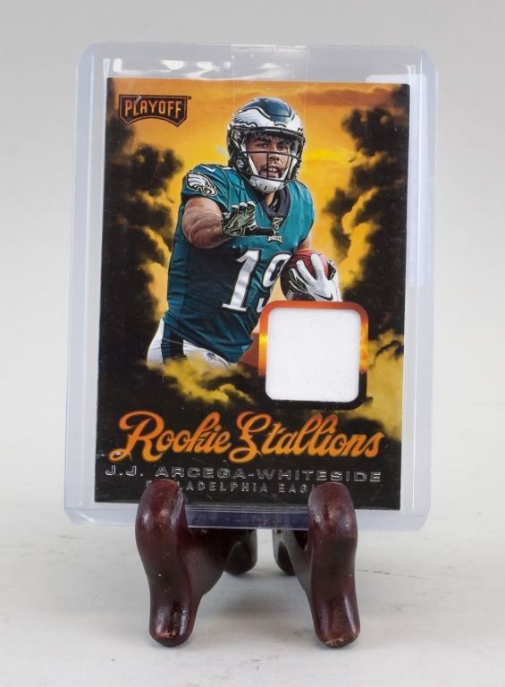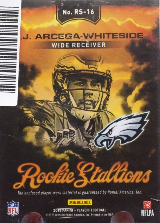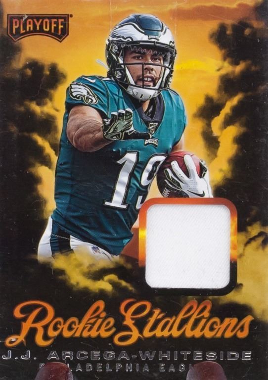Panini Playoff Football rookie stallions trading card. Featuring J.J Arcega-Whiteside's jersey patch.