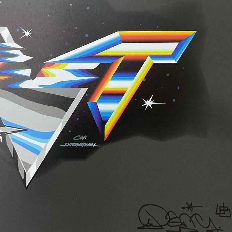 "Pant1 25 Years" is a hand pulled limited edition silkscreen and UV print on paper by Felipe Pantone numbered and hand signed by the artist. This piece is custom framed. Includes Letter of Authenticity. Measures approx. 33.5" x 20" (frame) 27.5" x 14" (image).