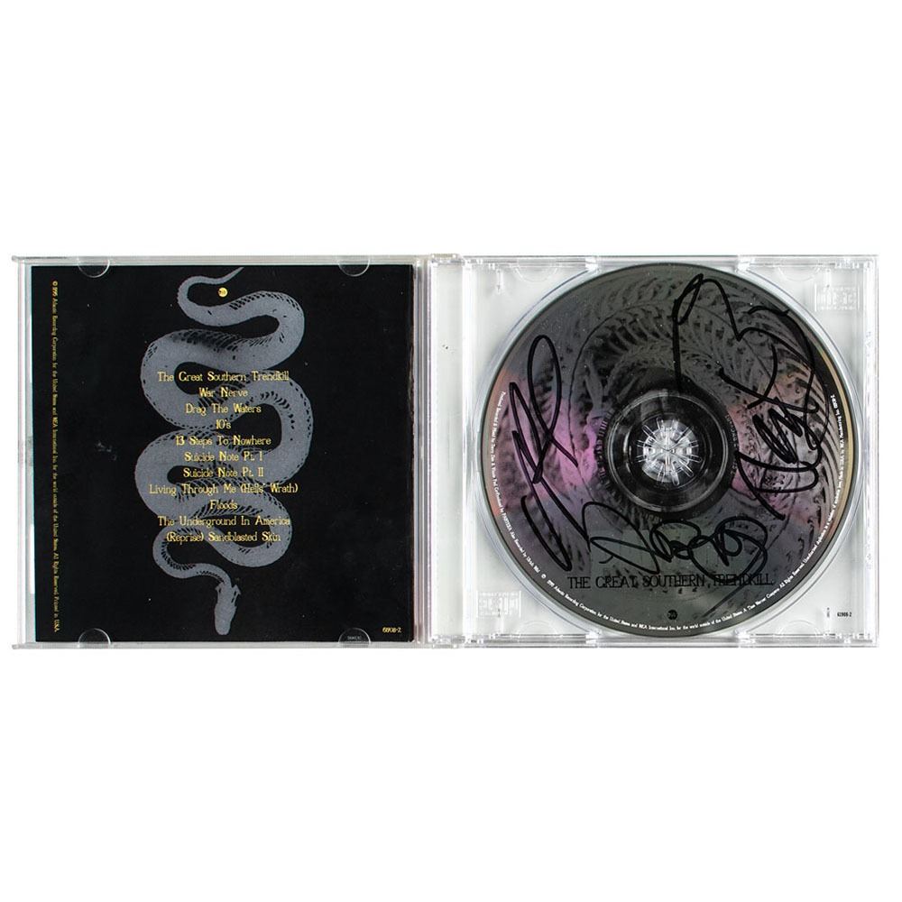 The Great Southern Trendkill CD by Pantera, signed on the CD in black felt tip by Phil Anselmo, Dimebag Darrell, Rex Brown, and Vinnie Paul. In fine condition.