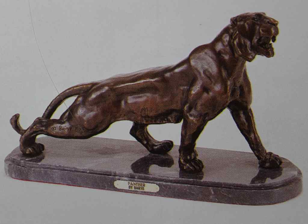 "Panther" Bronze Sculpture - After Barye - Museum Brown Finish - Mounted On Fine Italian Marble Base - Signed - Mint Condition - 14"H X 24"W - Lost Wax Cast Bronze