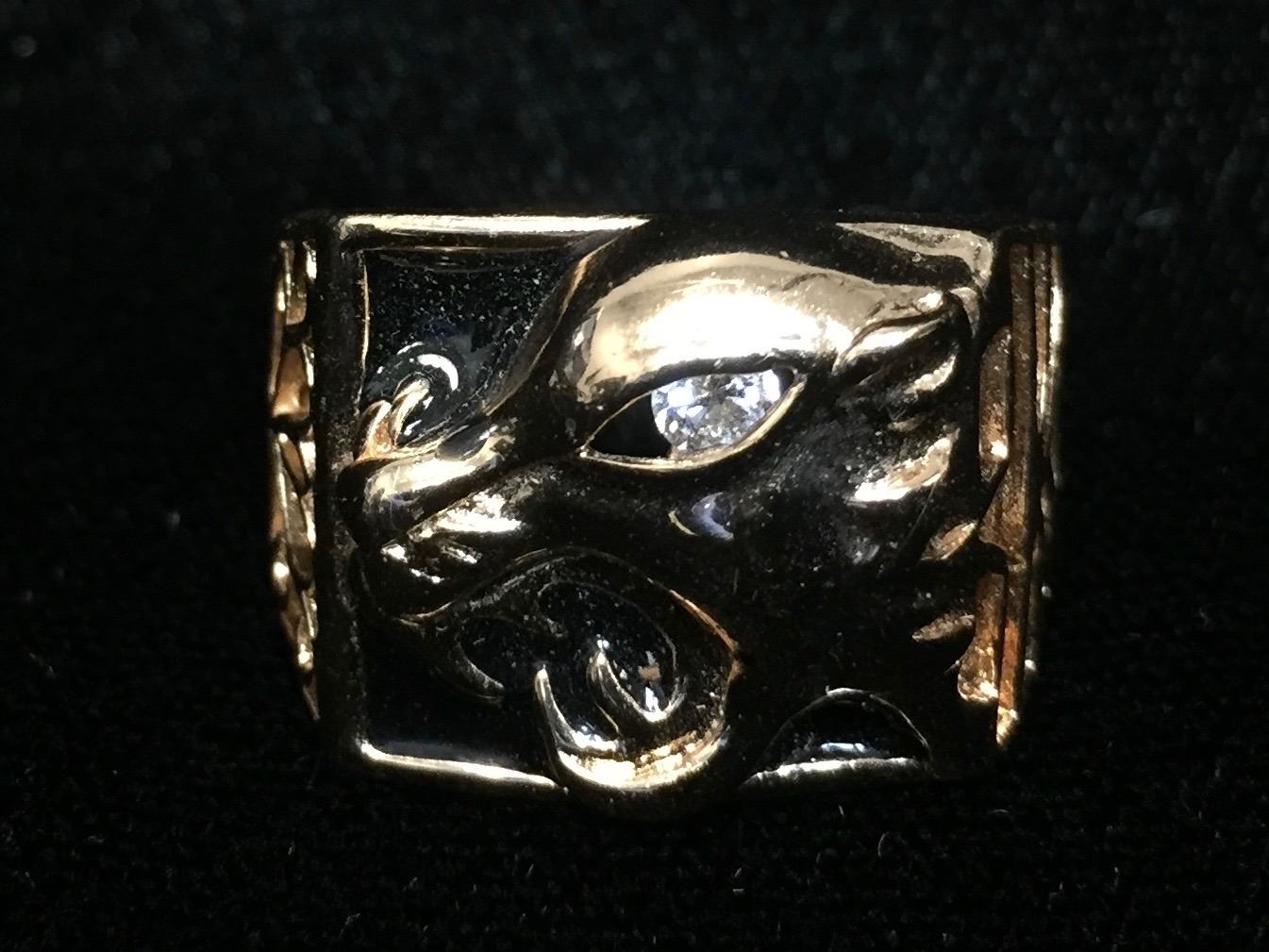 Lot 407; Panther Cubic Zirconia-Diamond Eye GP Men's Rin Size 8.5