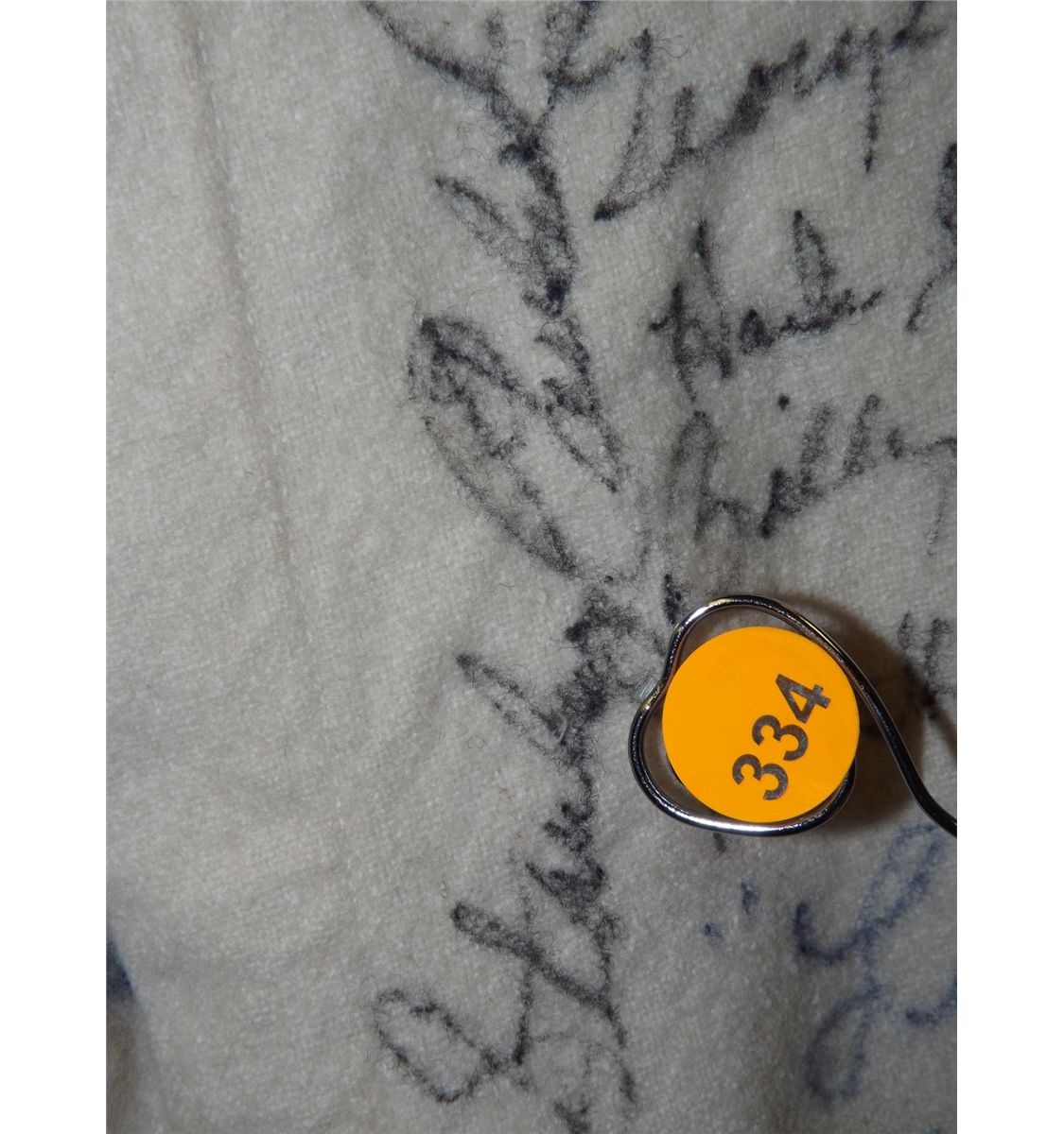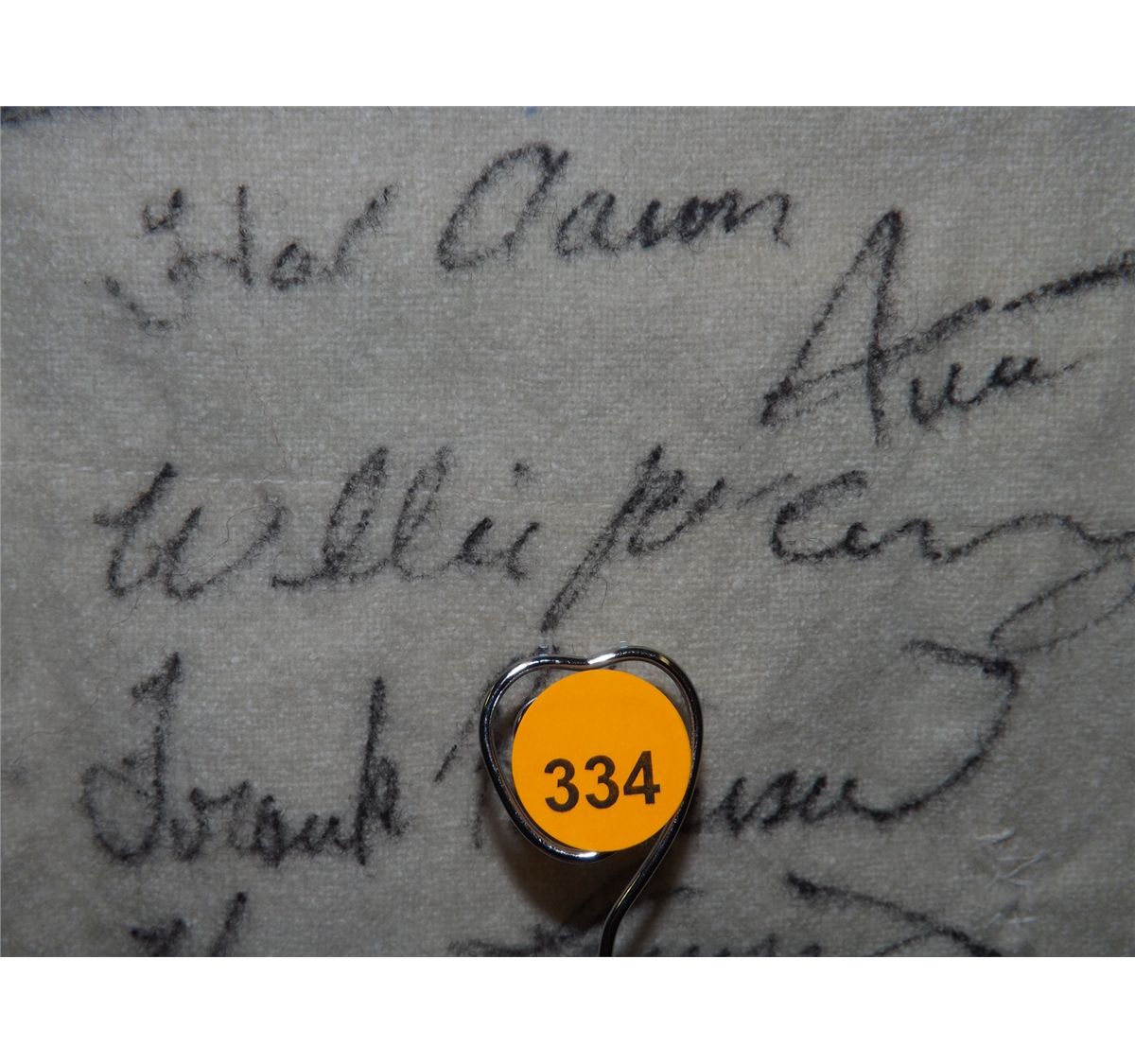 Pants Autographed by 60 HOF Players. Frame is 33x43, signatures include: Satchel Paige, Roger Maris, Al Barlick, Bob Feller, Mickey Mantle, Whitey Ford, Phil Rizzuto, Yogi Berra, Joe DiMaggio, Duke Snider, Sandy Koufax, Pee Wee Reese, Don Drysdale, Lefty Gomez, Bill Dickey, Carl Hubbell, Pete Rose, Ted Williams, Hank Aaron, Wilie Mays, Willie McCovey, Frank Robinson, Harmon Killebrew, Ernie Banks, Eddie Mathews, Reggie Jackson, Mike Schmidt, Cal Ripken Jr, Nolan Ryan, Roy Campanella, Joe Morgan, James "Cool Papa" Bell, Waite Hoyt, Robin Yount, Robin Roberts, Joe Sewell, Jim Palmer, Richie Ashburn, Al Kaline, George Kell, Lou Brock, Stanley Coveleski, Hank Greenberg, Billy Williams, Buck Leonard, Luke Appling, Earl Averill, Ralph Kines, Bob Lemon, Lou Boudreau, Fred Lindstrom, A.S. Chandler, Al Lopez, Stan Musial, Ted Lyons, Jocko Conlon, Rube Marquard, Johnny Mize and Gaylord Perry. Appraised or estimated retail value $130,000. COA by Christopher Morales. All Sales Final. Please see terms and conditions of auction.