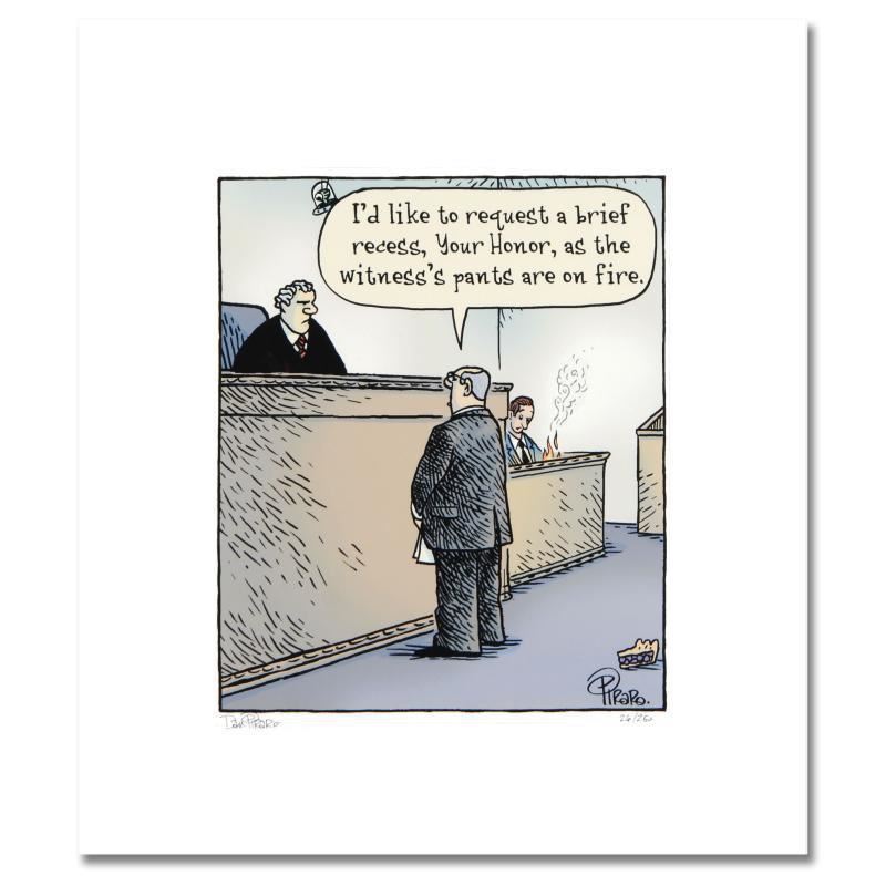 "Pants on Fire" is a limited edition giclee on paper by Dan Piraro creator of the critically acclaimed and award winning comic strip Bizarro! This piece is numbered and hand signed by the artist and includes aletterof authenticity. Measures approximtely 12" x 10" (image).