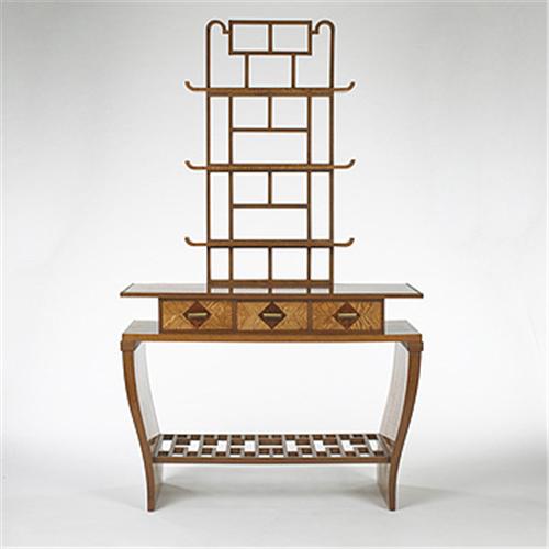 Paolo Buffa console Italy, c. 1930 snake wood, brass 48"w x 18"d x 80.5"h Literature: Il Mobili Deco Italiano, Guttry and Maino, pg. 103 illustrates this example
