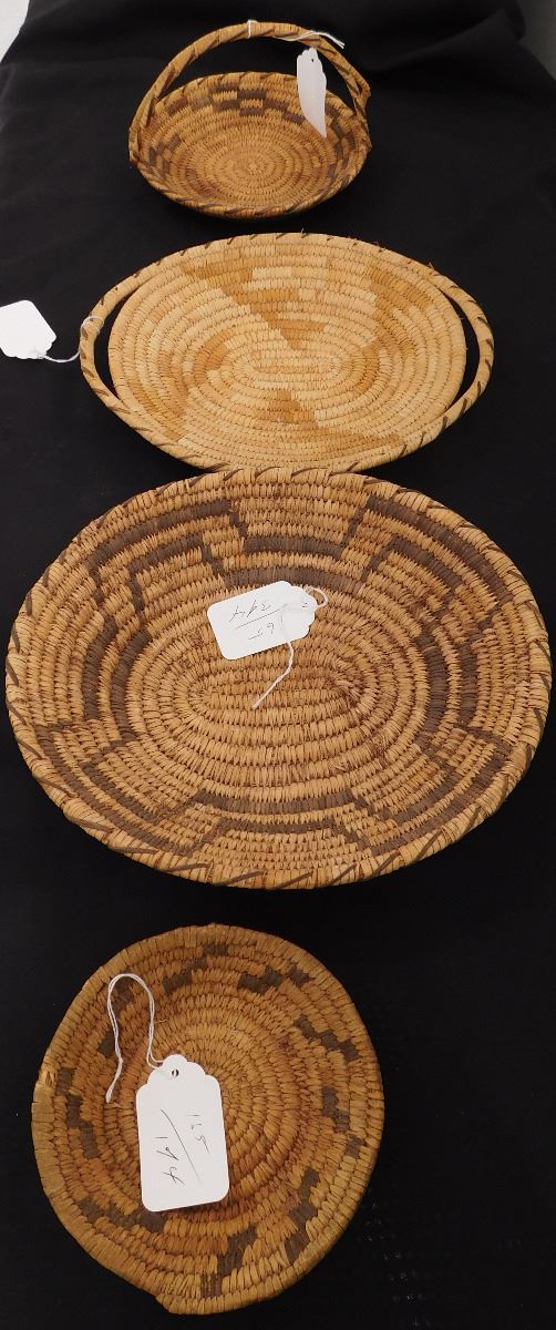 Great Basket Collection from the 1930's. The items measure 6", 8", 12" and 12". There is minor stitch loss with normal wear, use and staining. Shipping: $35.00