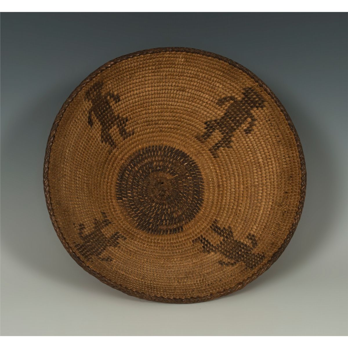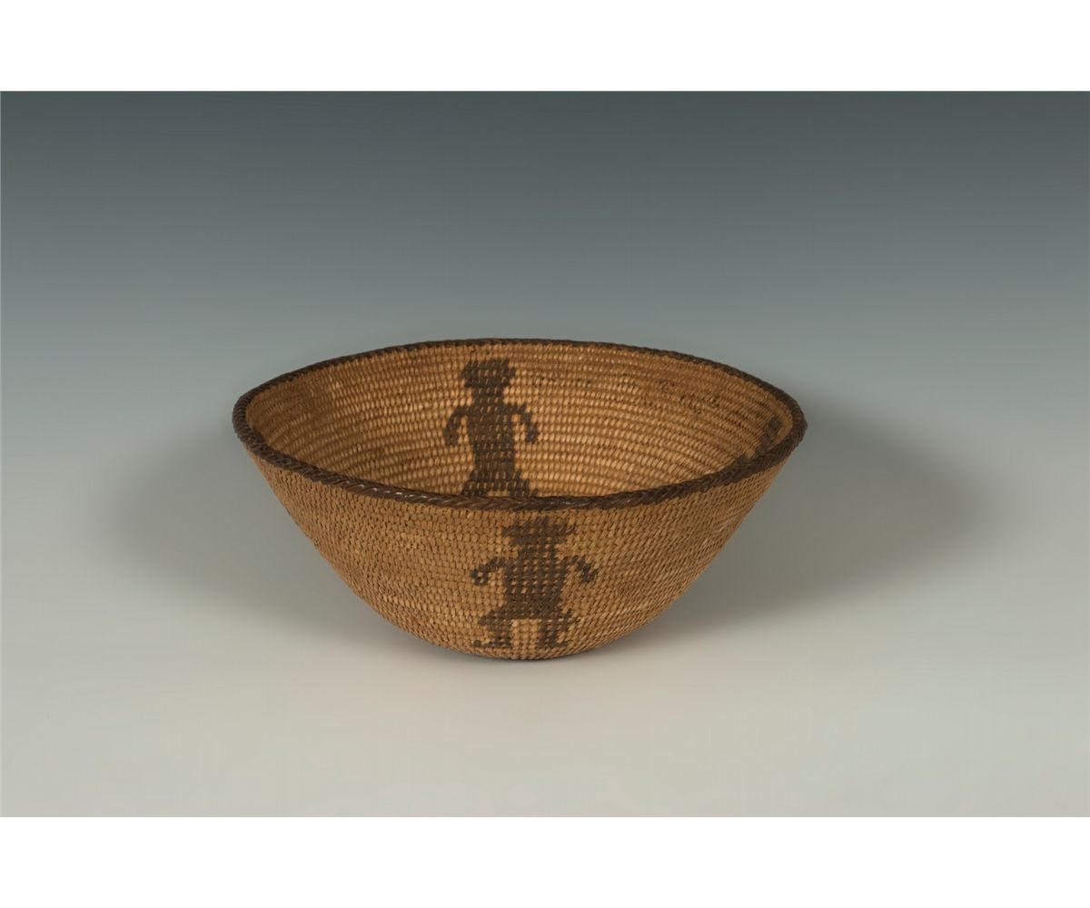 Papago Basketry Bowl. 9.5" diameter, 4" tall. Four large human figures. Circa 1920.