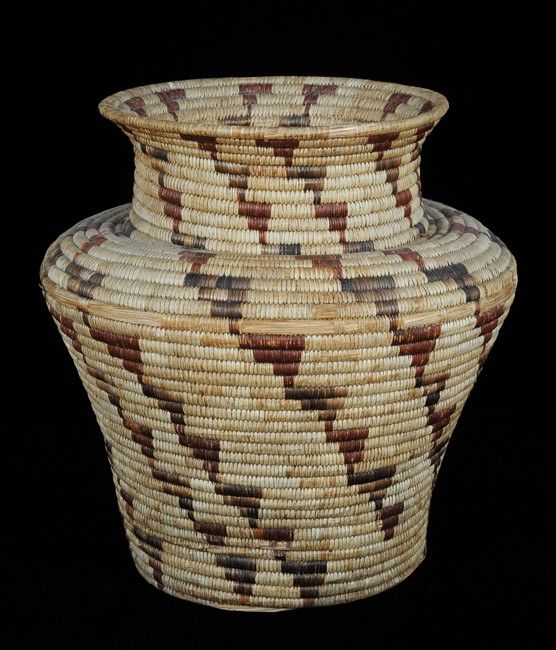 Papago Basketry Olla with Stepped Triangle Motif ca. 1920's 17" D. 17" H. Good Condition with Some Loss