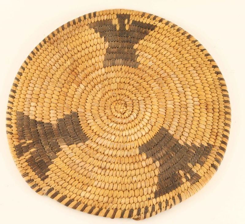 Three eagle design in brown on natural. Measures 10" dia. Good condition.