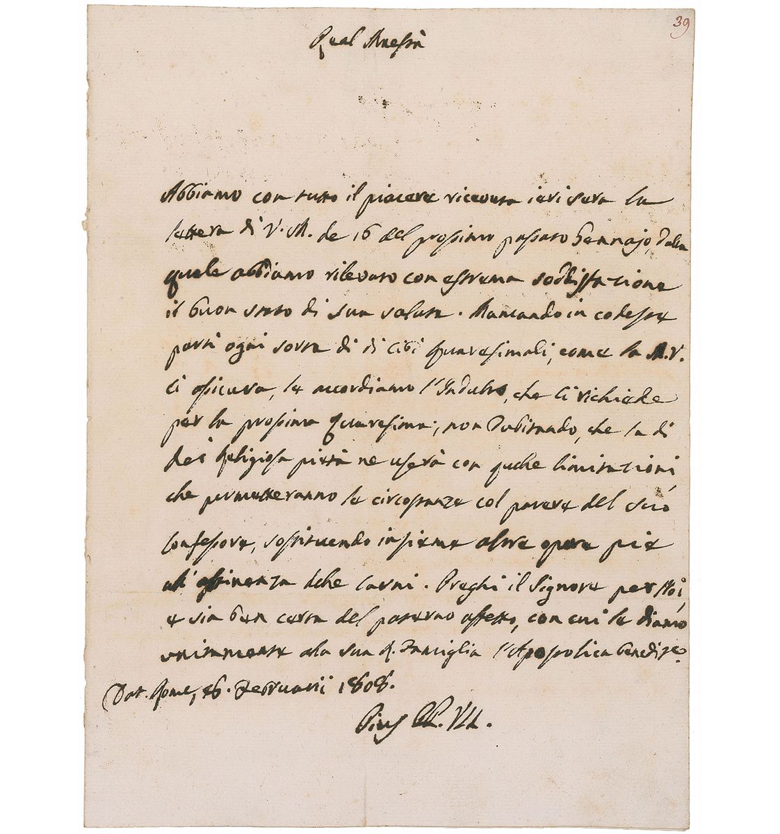 Pius VIII (ALS as bishop of Montalto dated 1804);