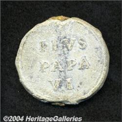 <B>Papal States. Pius IX 1795-1799,</B></I> Lead Bulla, Conjoined Busts/PIVS/PAPA/VI, VF. <BR><BR><B>Important notice:</B> Heritage usually auctions material at the rate of 200-250 lots per hour. On some occasions eBay Live bid software or the Internet may not be able to keep up with the pace of the auction. We recommend placing a realistic absentee bid now as insurance to avoid disappointment. Occasionally the auctioneer may eliminate or reject an eBay Live bid, and the auctioneer may also reopen a lot after the close of the eBay live bidding (usually because we missed an audience bid), and may reject your bid even if it shows you as the winning bidder. By bidding via eBay Live, you agree that Heritage may award the lot to another bidder at its sole discretion under the circumstances described above or any other reasonable circumstances. Since eBay bids are not shown to us until we open the lot on the floor, we treat those bids just like floor bids. In most cases the floor responds before the eBay bid is presented to us, due to Internet lag time, so for consistency we have made it a policy that floor bids are always considered first over tie eBay live bids. Also please note that all Heritage lots purchased through eBay Live carry a 20% Buyer's Premium. Please make sure you read the Terms and Conditions before you bid.
