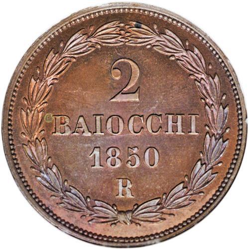 Papal States. Pius IX Proof 2 Baiocchi 1850R year 5, KM
