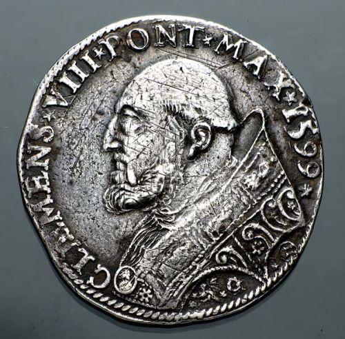 Papal coins - Clemente VIII (1592-1605)-Piastra del 1599 - Zecca di Avignone - gr. 31,28 - Di grande prestigio e rarità - Ag