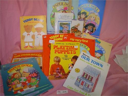 Tray of New Paper Doll Books: Heather Honeypawss by Current, Mattel, Golden, Teddy Bears by Whitman, Golden, Stoneway Kids Krafts, Playtime Puppets by Whitman, My Buddy by Golden