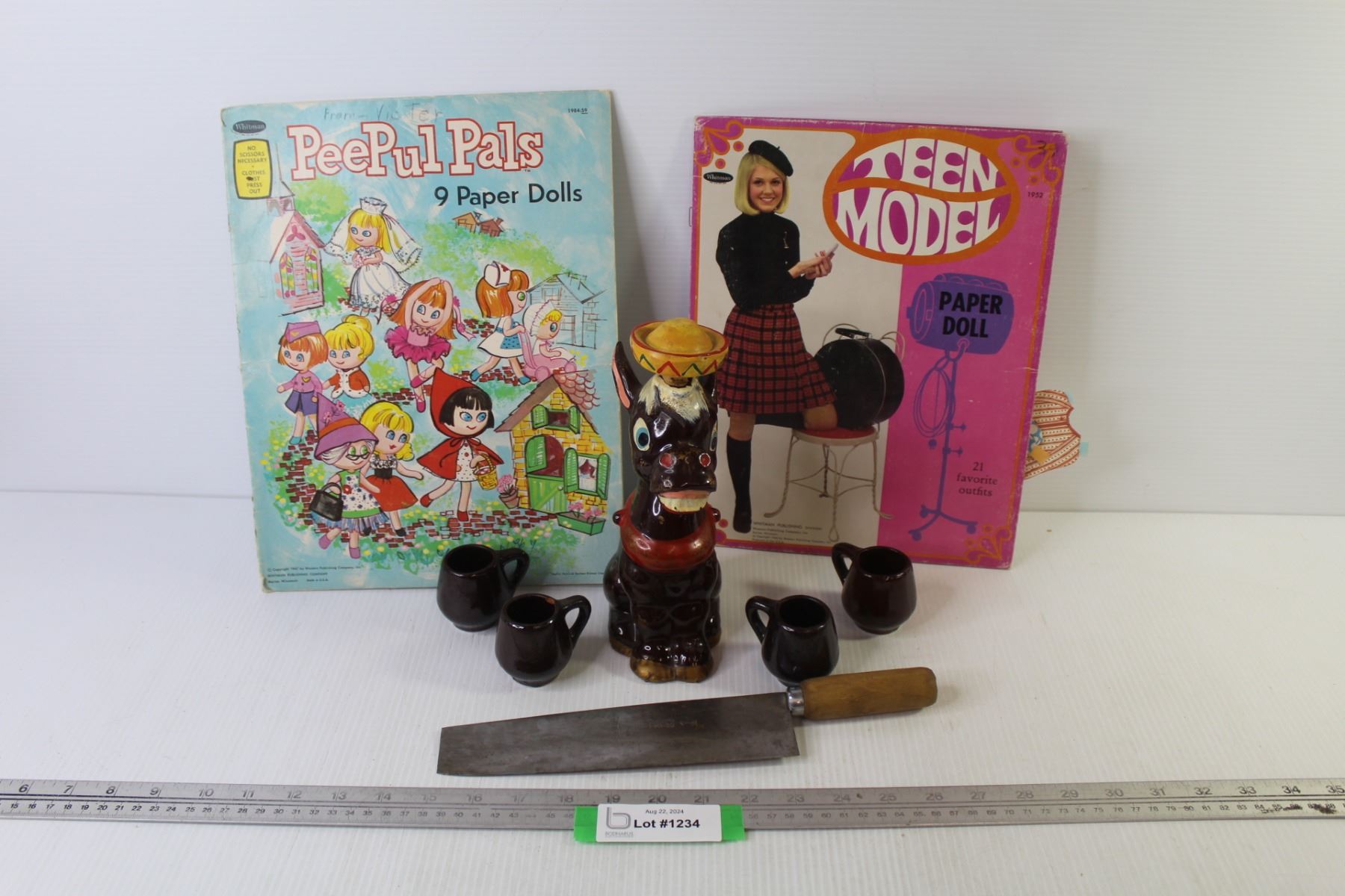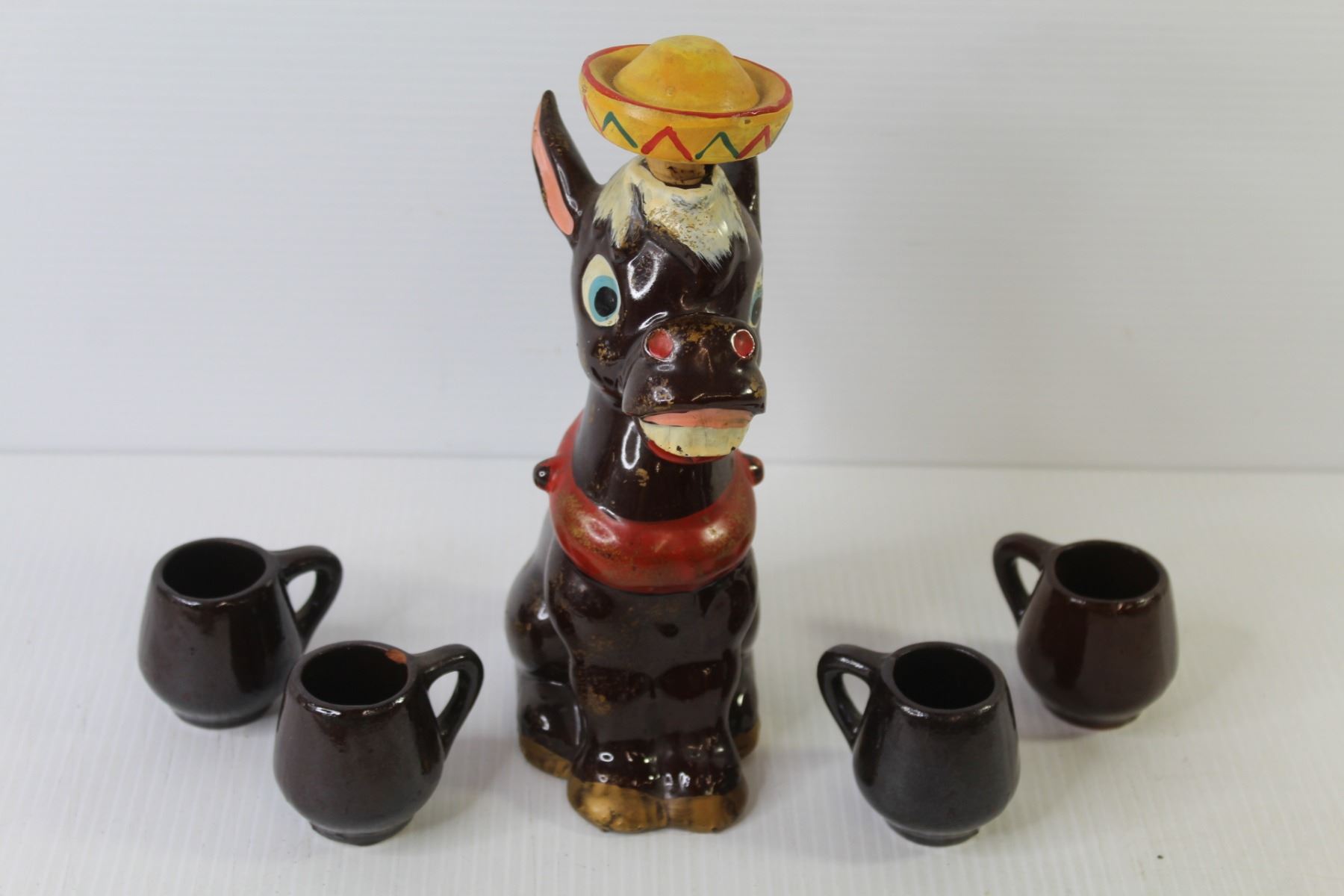 Paper Dolls - Vintage Donkey Decanter w/4 Cups - Small Cleaver
