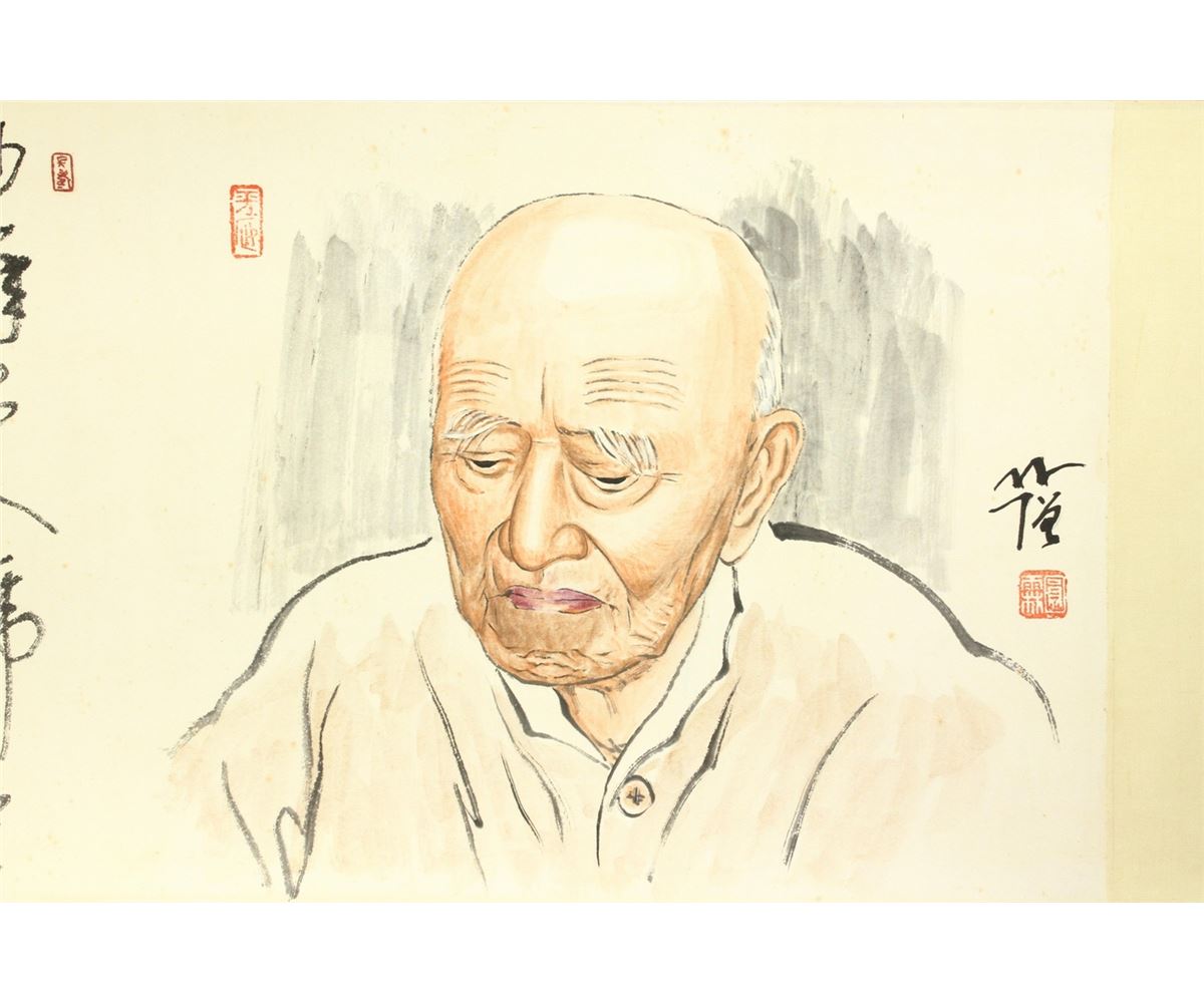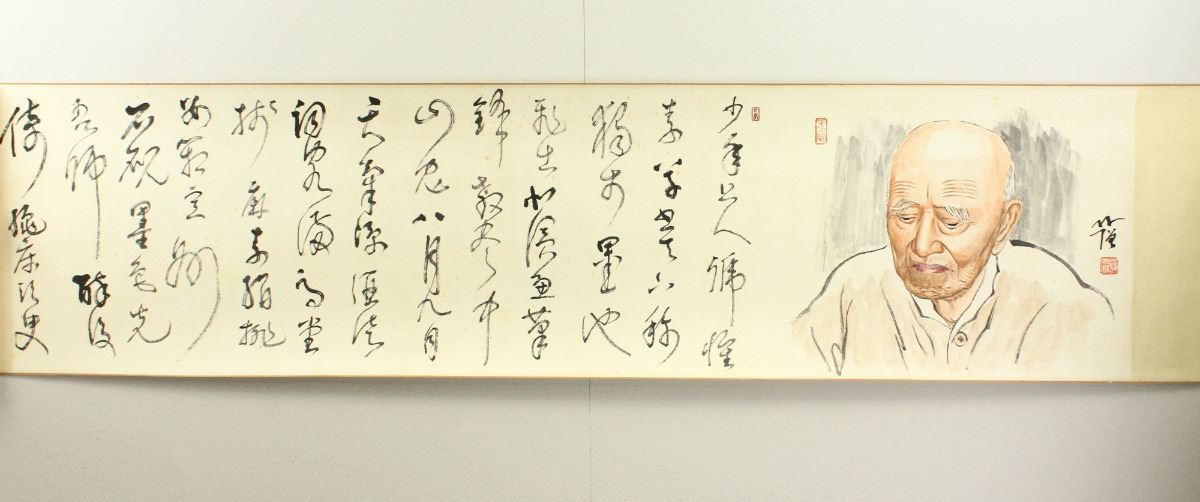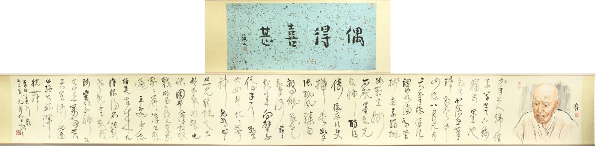 Cursive calligraphy and portrait; hand scroll; Chinese ink and watercolour on paper; signed by Lin Sanzhi and inscribed with artist seals; 32.5 cm X 274 cm; 30 cm X 66.5 cm