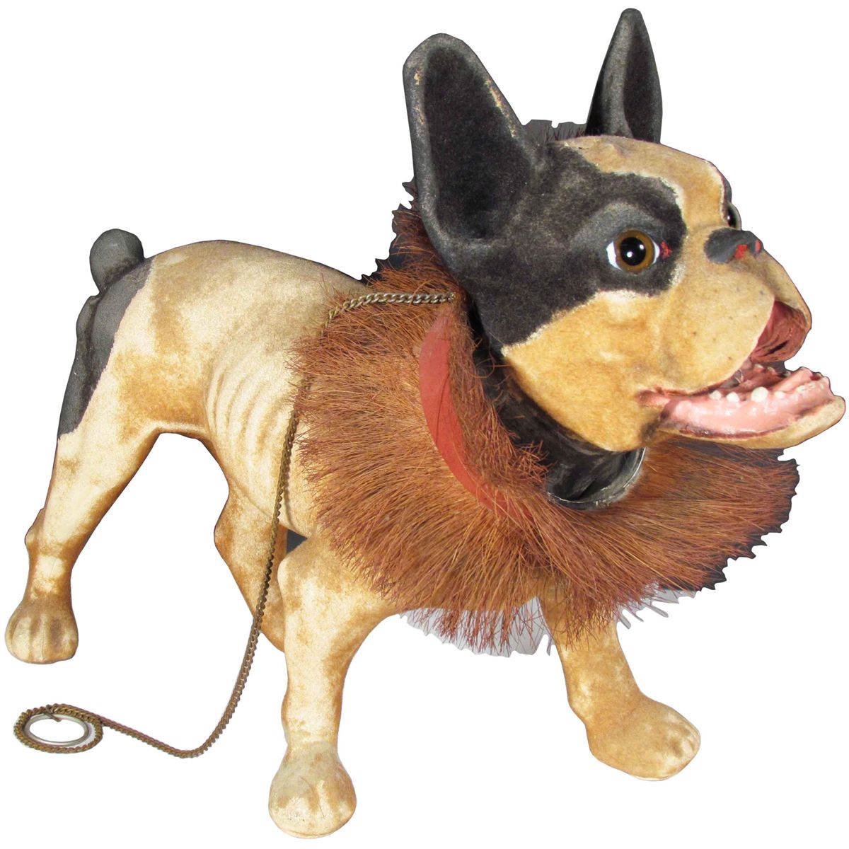 Paper Mache Barking Nodder Dog. Pull leash and the dog barks and head nods. Some wear to body otherwise excellent working condition. 18 inches long.