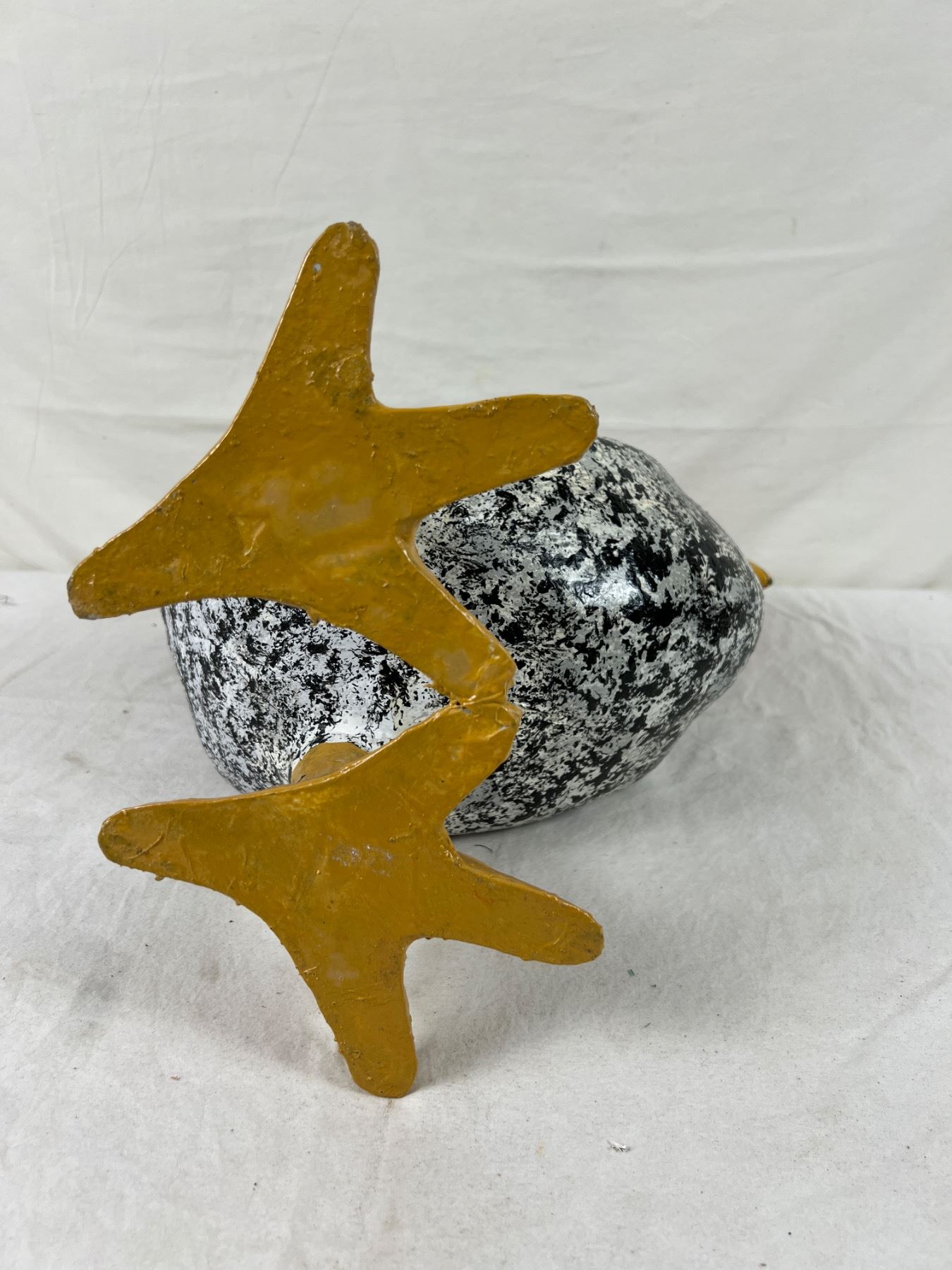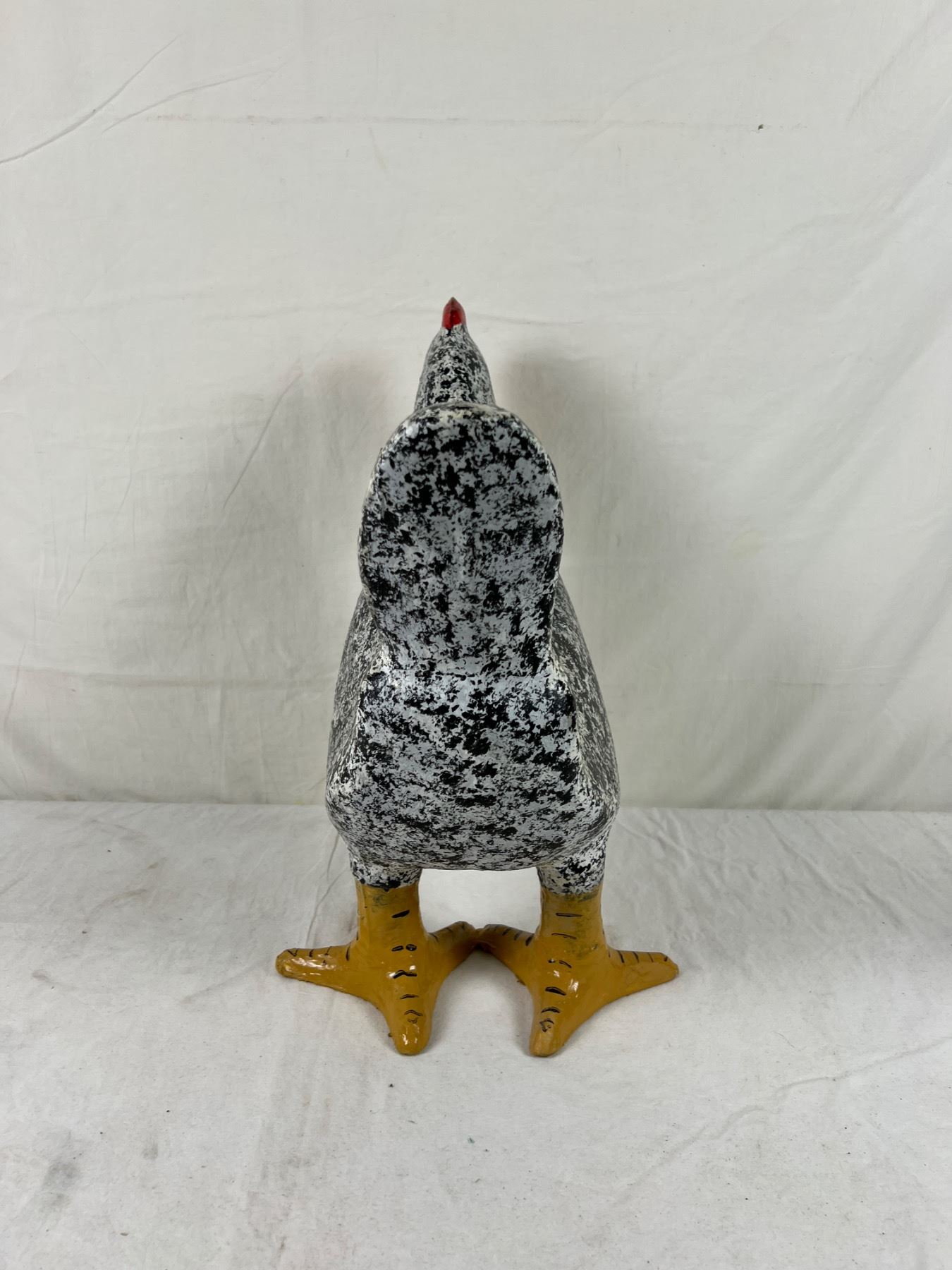 Measures 18" tall by 16" long and 11" wide. Has residue from a sticker on one of his feet.