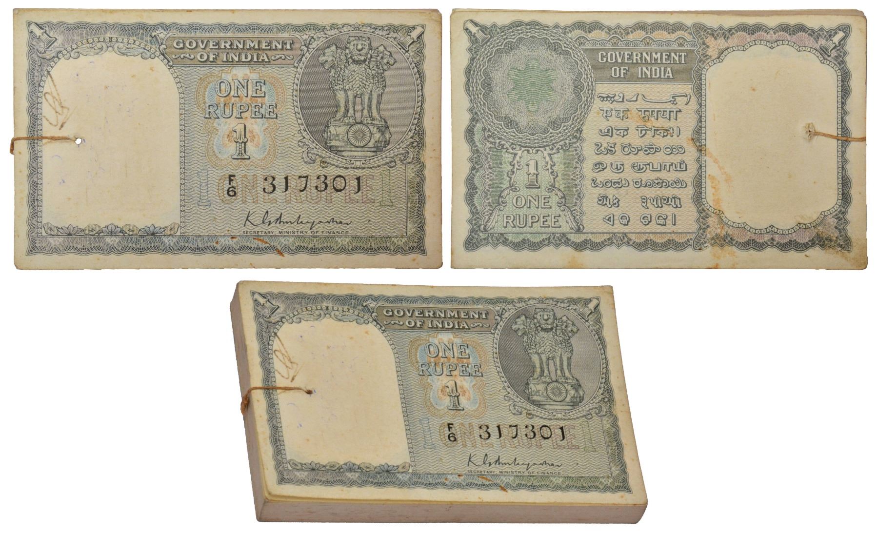 1 rupee, ND (1950), full packet of 100 notes, signed by K.G. Ambegaonkar, serial no.: F6 317301 to 317400, J&R 6.1.1.2. (100 notes)
