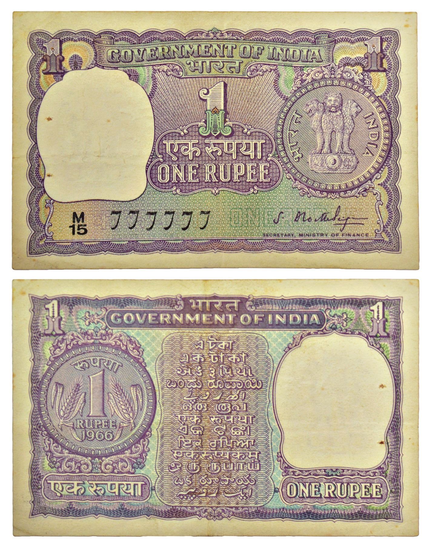 1 rupee, fancy number, 1966, signed by S. Bhoothalingam, without inset, serial no.: M15 777777, J&R 6.1.6.1.