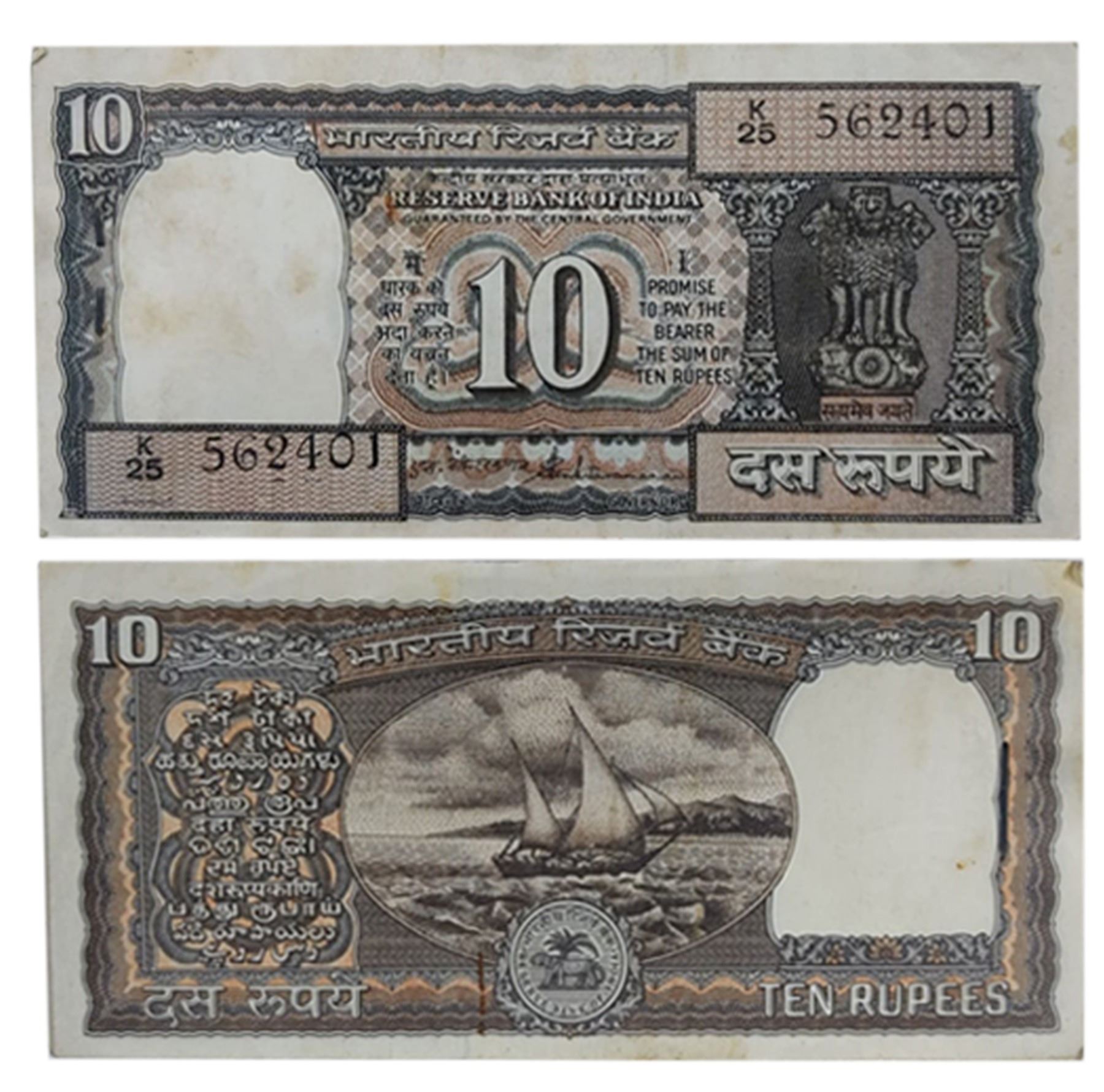 10 rupees, full packet of 100 misprint notes, boat series, ND (1990-1992), signed by S. Venkitaramanan, serial no.: K25 562401 to 562500, lower left side serial number slightly shifted to upperside in all notes. (100 notes)