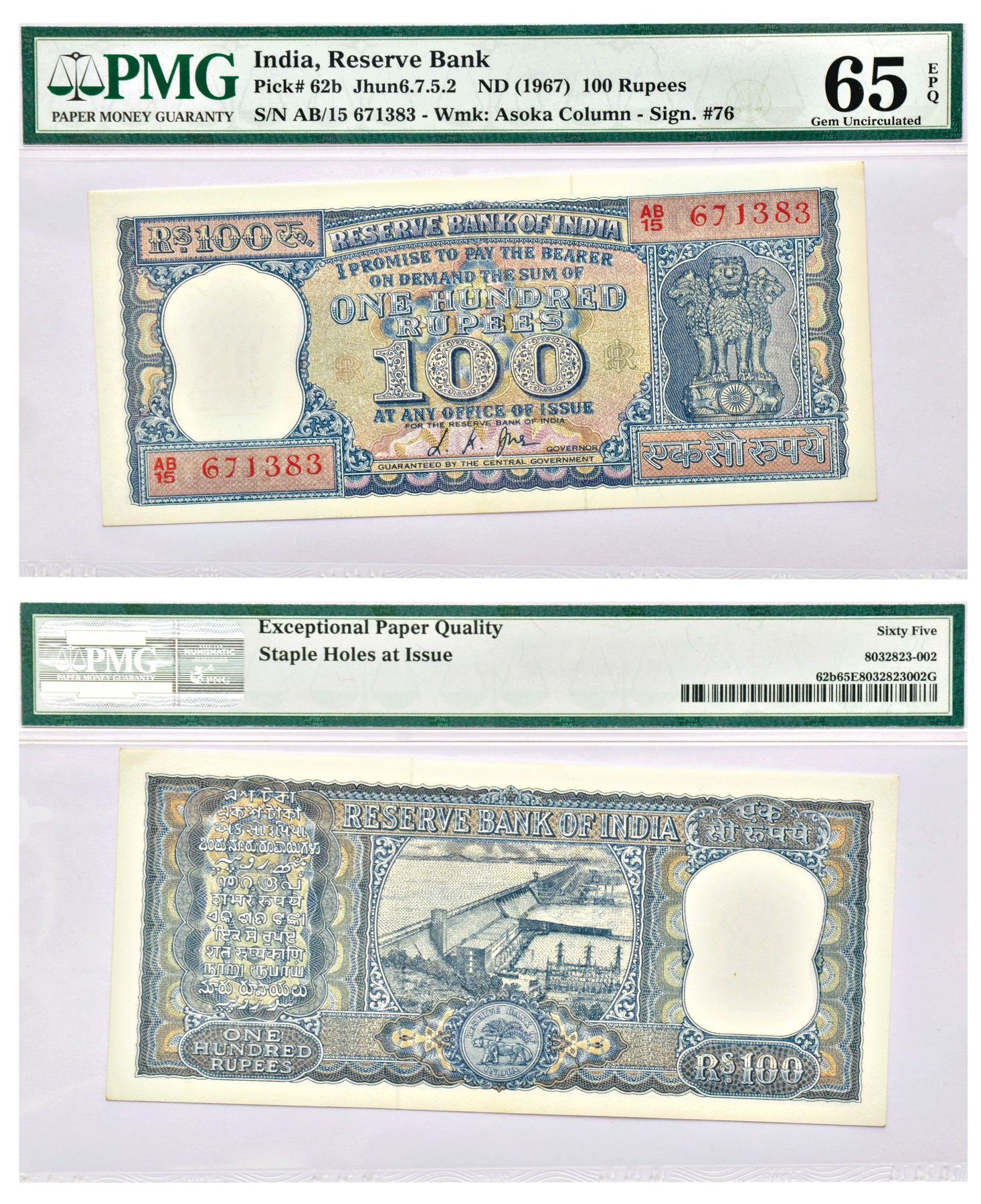 100 rupees, Diamond series, ND (1967-70), signed by L.K. Jha, serial no.: AB15 671383, J&R 6.7.5.2.