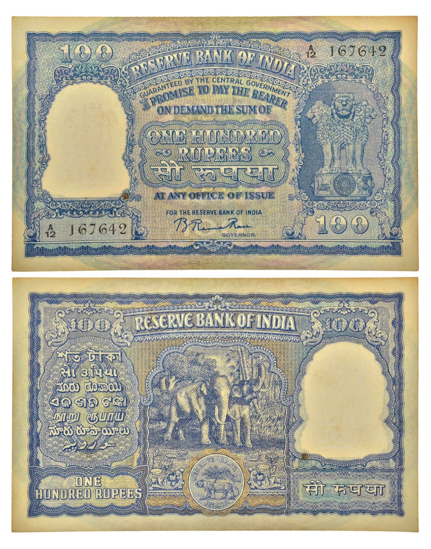 Paper Money: 100 rupees, Elephant series, ND (1951), Bombay circle, signed by B. Rama Rau, incorrect