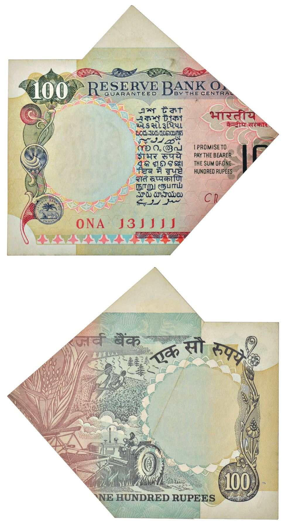 100 rupees, misprint, Agriculture series, ND (1992-1997), signed by C. Rangarajan, without inset, serial no.: 0NA 131111, misaligned cutting, part of the sheet error.