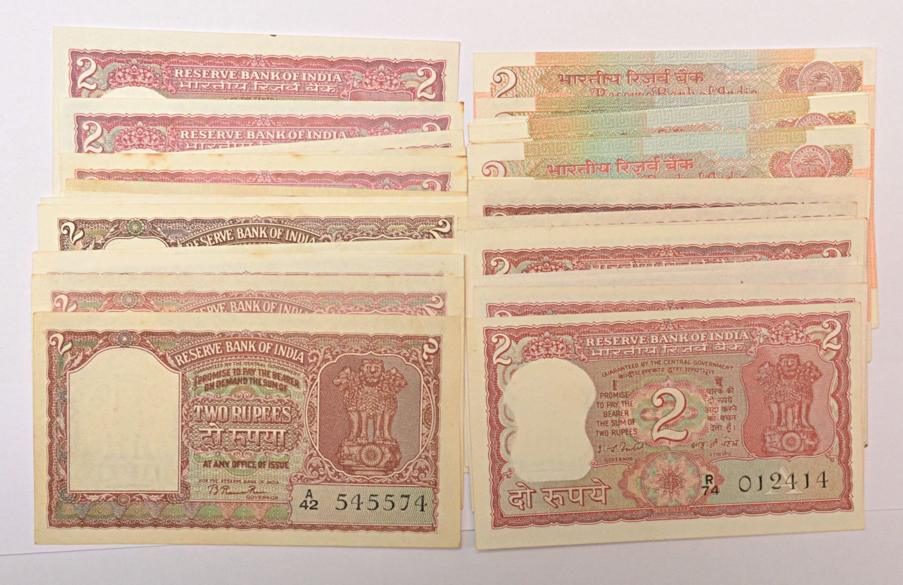 2 rupees, complete set of 36 notes, 1950 to 1994, with different types and signature. (36 notes)