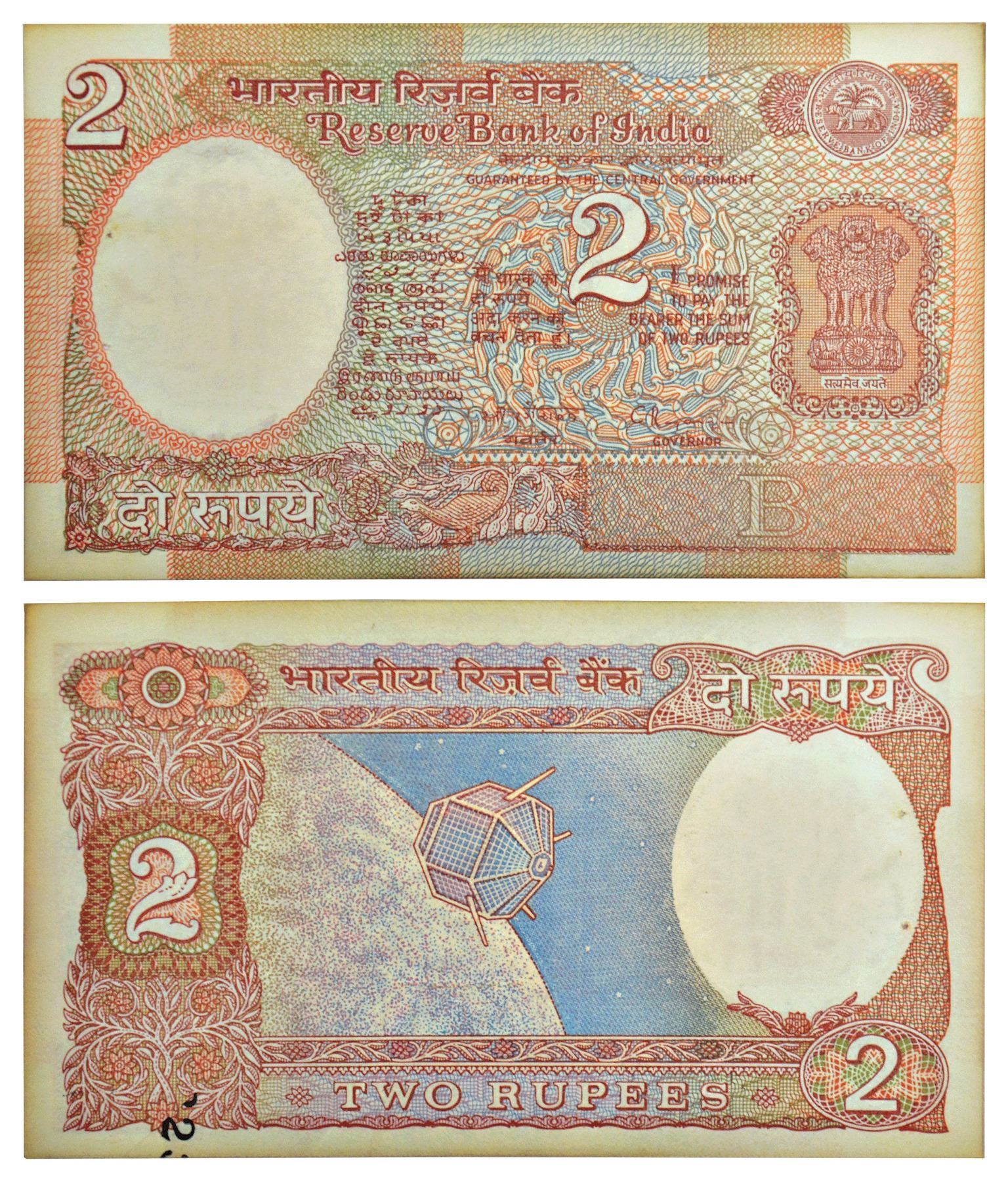 2 rupees, misprint, ND (1992-1997), aryabhatta series, signed by C. Rangarajan, inset 'B', serial number not printed on obverse, some numeral printed on reverse.