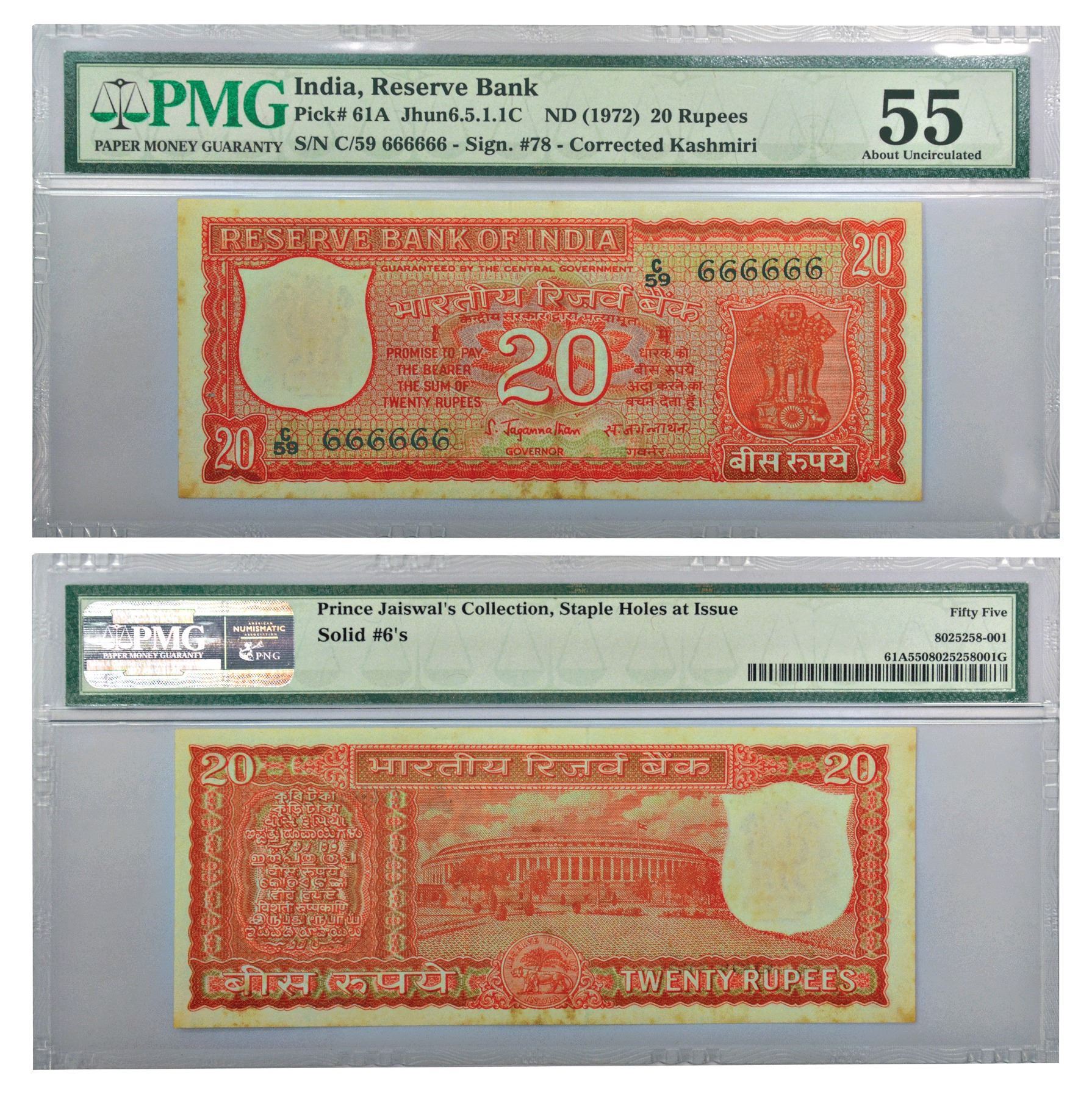 20 rupees, fancy number, ND (1972), signed by S. Jagannathan, without inset, serial no.: C59 666666.
