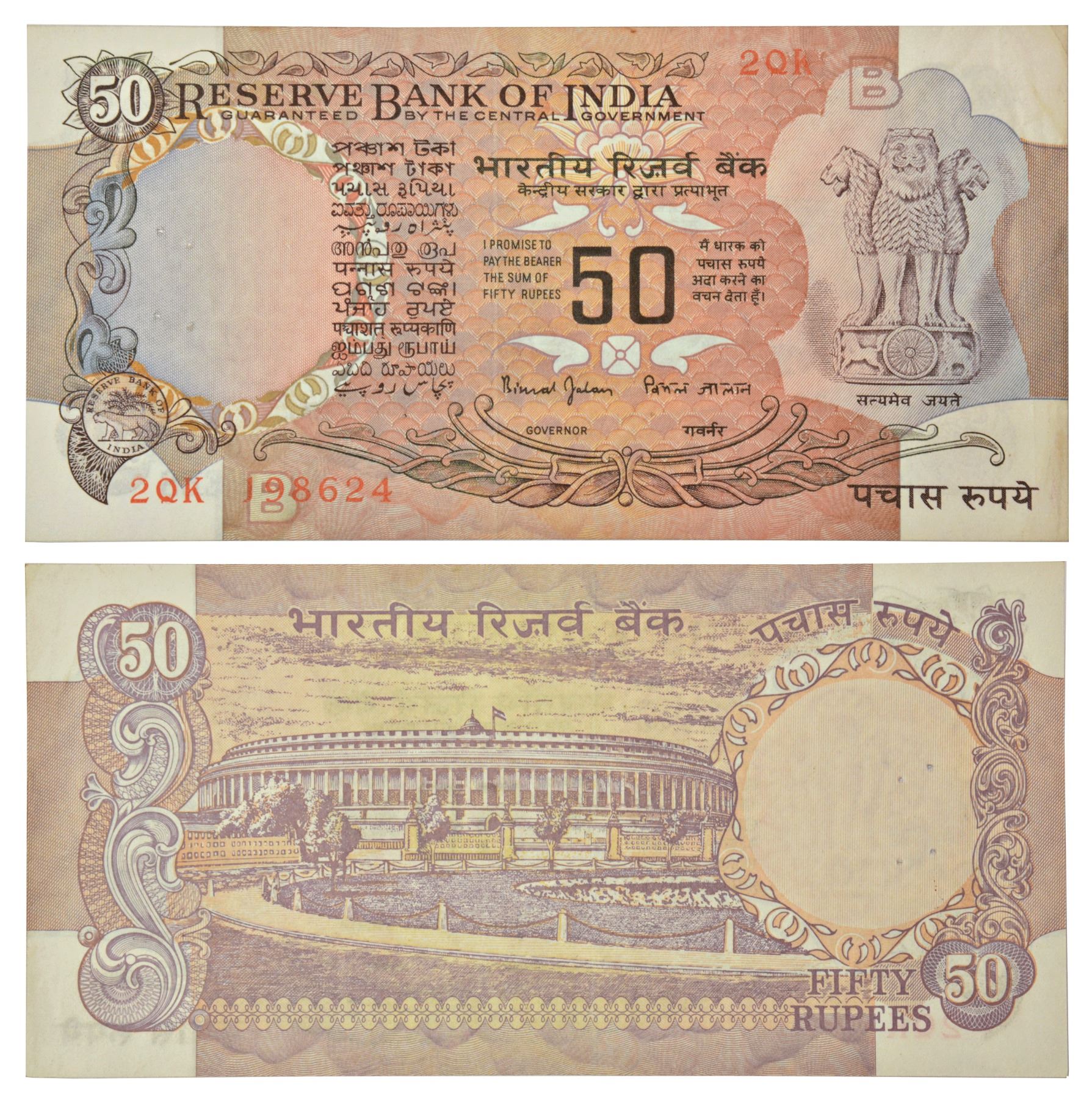Paper Money: 50 rupees, misprint, Parliament series, ND (1977-2003), signed by Bimal Jalan