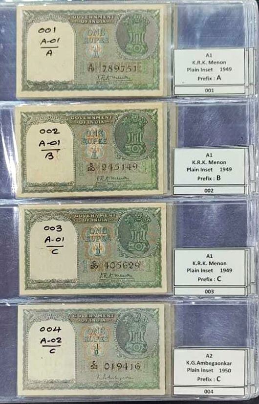 Paper Money: A collection of 533 Republic of India notes, 1 rupee, prefix wise mega set from 1949 to 2019 (except 7 notes: A2-G, A3-M, A5-Q, A7- G, A11-Y, A12-K and A20-T), signed by various Finance Secretaries and different types. (533 notes)