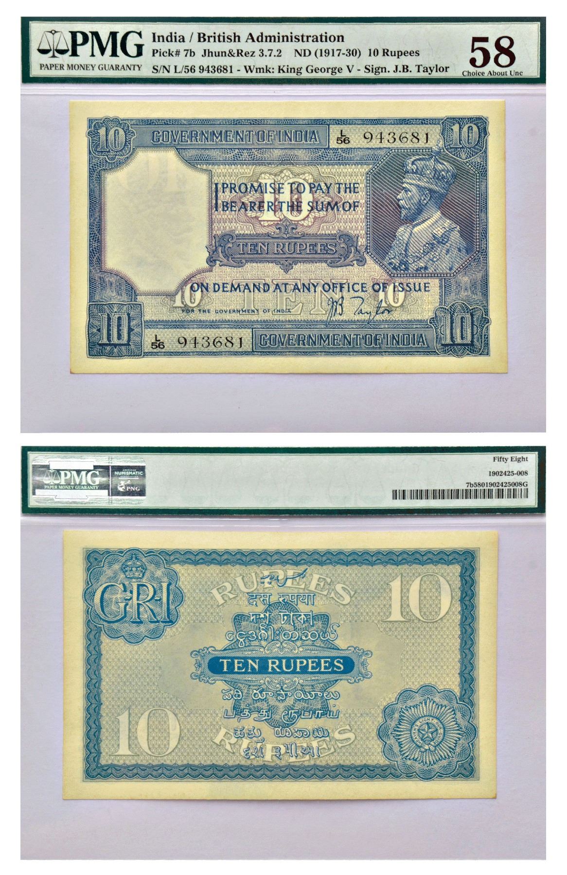 Paper Money: British India, George V, 10 rupees, 2nd issue, ND (1926), signed by J.B. Taylor,