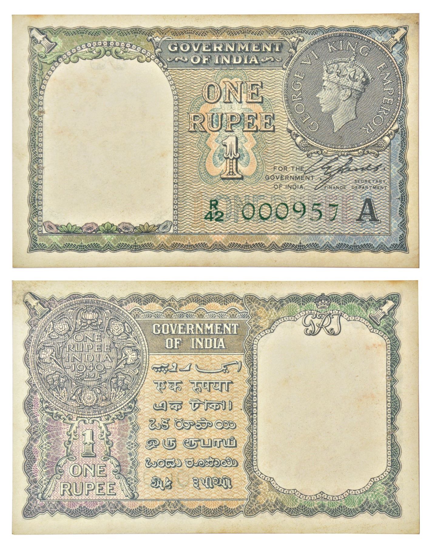 British India, George VI, 1 rupee, 1940, signed by C.E. Jones, inset 'A', serial no.: R42 000957 in green, J&R 4.1.1B.