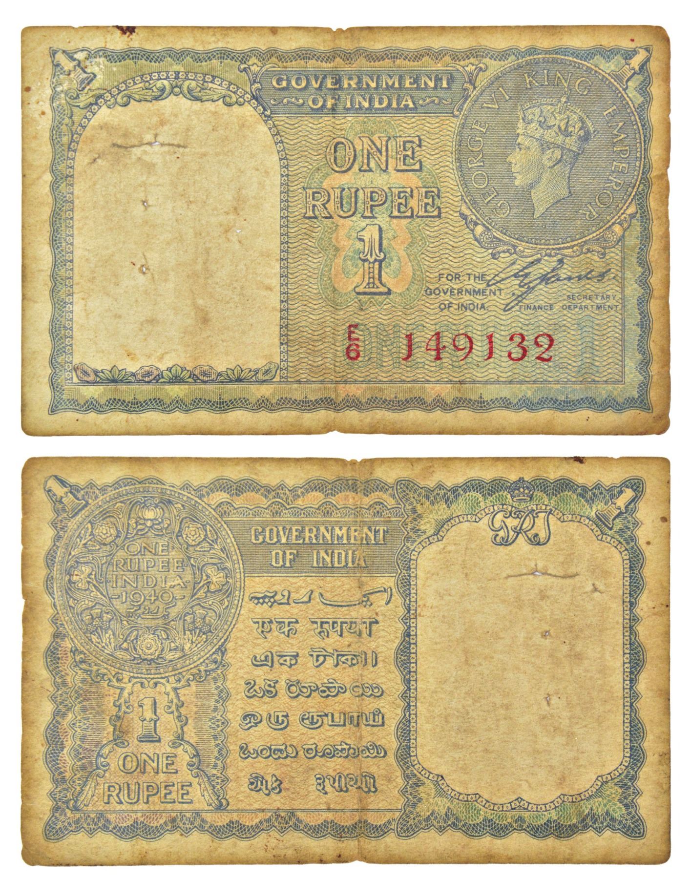 Paper Money: British India, George VI, 1 rupee, 1940, signed by C.E. Jones, without inset, serial no.: E6 149132 in red, J&R 4.1.1D.
